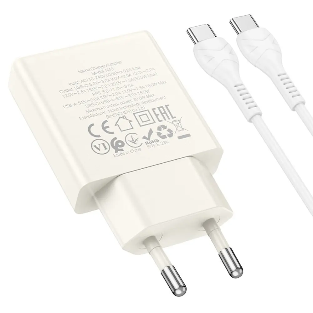 Hoco N45 dual port wall charger set is a versatile and powerful charging solution designed to meet the needs of modern devices. With its high-speed charging capabilities, compact design, and durable construction, this charger set is perfect for those who need a reliable and efficient way to charge their gadgets.