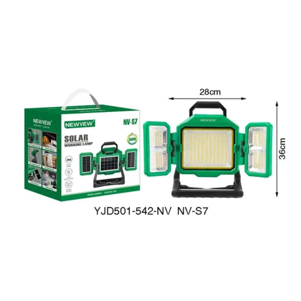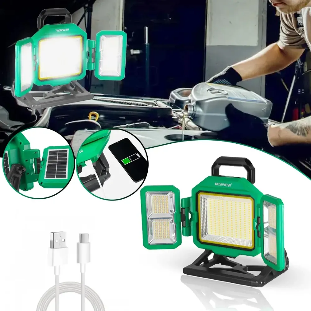 A powerful and portable lighting solution designed for outdoor use. Equipped with 276 ultra-bright LEDs delivering up to 600W of illumination, it ensures reliable brightness for camping, construction, and emergency situations. Its 3300mAh rechargeable battery supports solar and Type-C charging, giving you flexibility and energy independence. Built to withstand harsh outdoor conditions, this lamp features a weather-resistant design and battery status indicator for added convenience. Whether you're off-grid or working through the night, this lamp is built to perform.