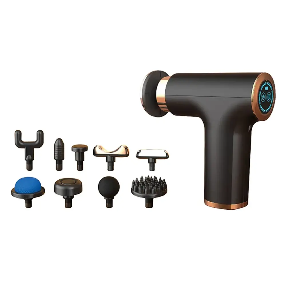 The Muscle Heat and Freeze Massage Gun (SL-760) delivers deep muscle relief through its combination of heat and cold therapy. Equipped with 10 interchangeable massage heads, it targets different muscle groups effectively to reduce tension and accelerate recovery. The built-in LCD screen provides easy control and clear feedback during use. Its noise reduction technology ensures a quiet, relaxing experience. Powered by a 1500mAh rechargeable battery, this device offers portability and convenience for use at home, gym, or on the go.