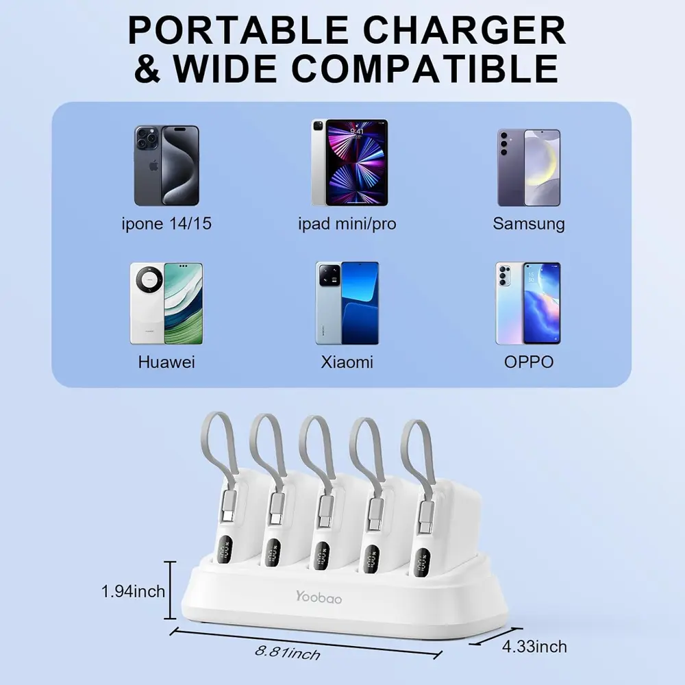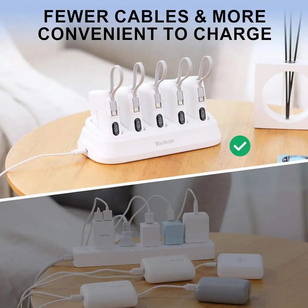 The high-capacity, fast-charging solution is perfect for shared environments like homes, offices, cafés, and public lounges. It features five detachable 10000mAh power banks that can be charged simultaneously in a sleek, space-saving dock. Each unit supports PD 20W fast charging and is equipped with a USB-C port, making it compatible with most modern devices. The built-in LED indicators provide quick status updates, so you always know when power banks are ready for use. Whether you’re managing multiple devices or offering convenient charging for guests, this charging station delivers maximum efficiency and convenience. Safety features are also built-in, giving you peace of mind with every use.