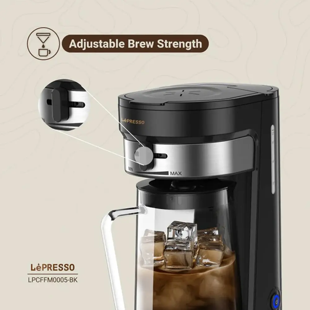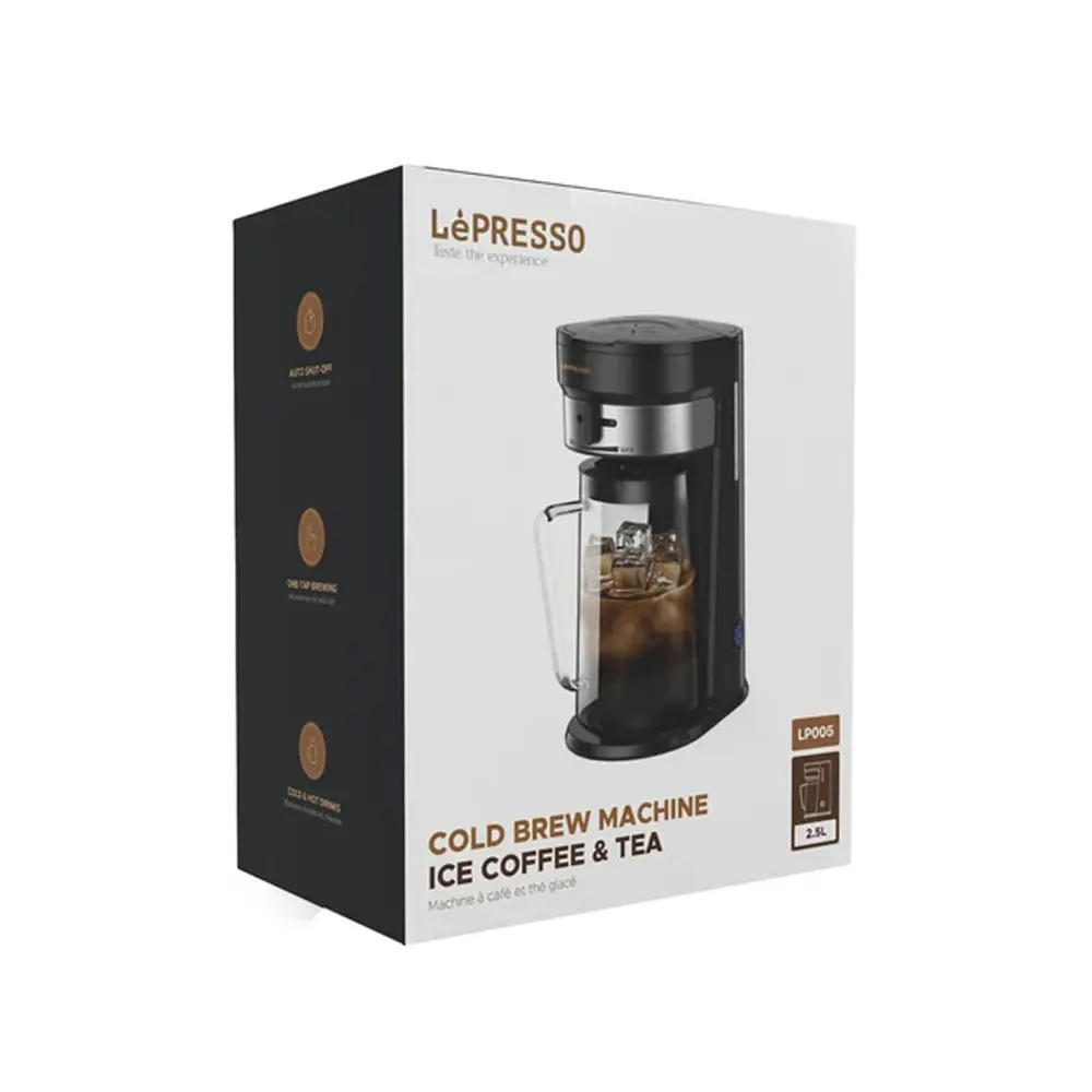 Brew refreshing iced coffee or tea effortlessly with the Lepresso Cold Brew Machine. Designed for convenience and flavor precision, it features a one-tap brewing system and adjustable brew strength, allowing you to craft your perfect cup every time. Whether you prefer hot or cold drinks, this machine adapts to your needs with ease. Its large 2.5L pitcher and 900ml water tank make it ideal for serving multiple people at once. With features like auto shut-off and a washable nylon filter, this cold brew maker offers both safety and sustainability in every use.