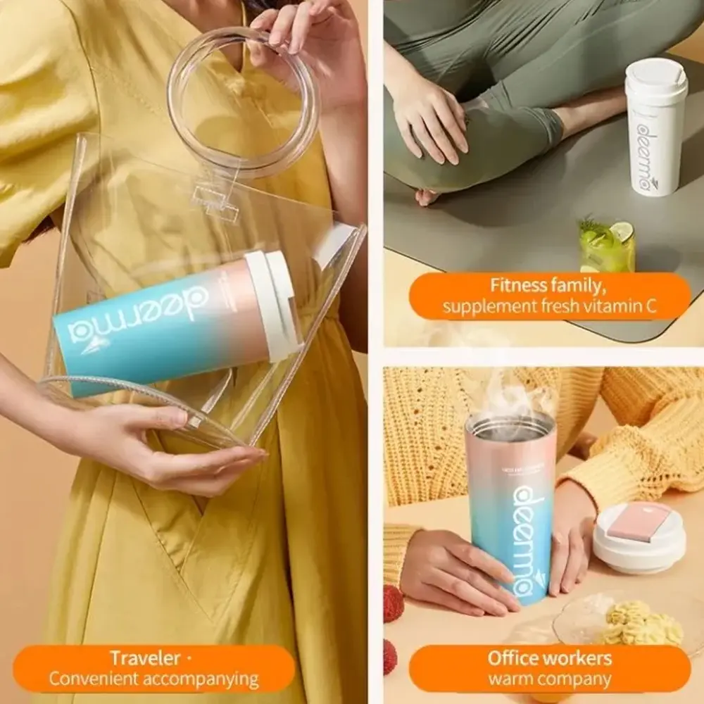 Deerma Insulation Juicer Blender, Keep Warm & Cold, 304 Stainless Steel, 300ml Capacity, 3 Hr. Rechargeable,1500mAh, Safety Lock, Double Lid.