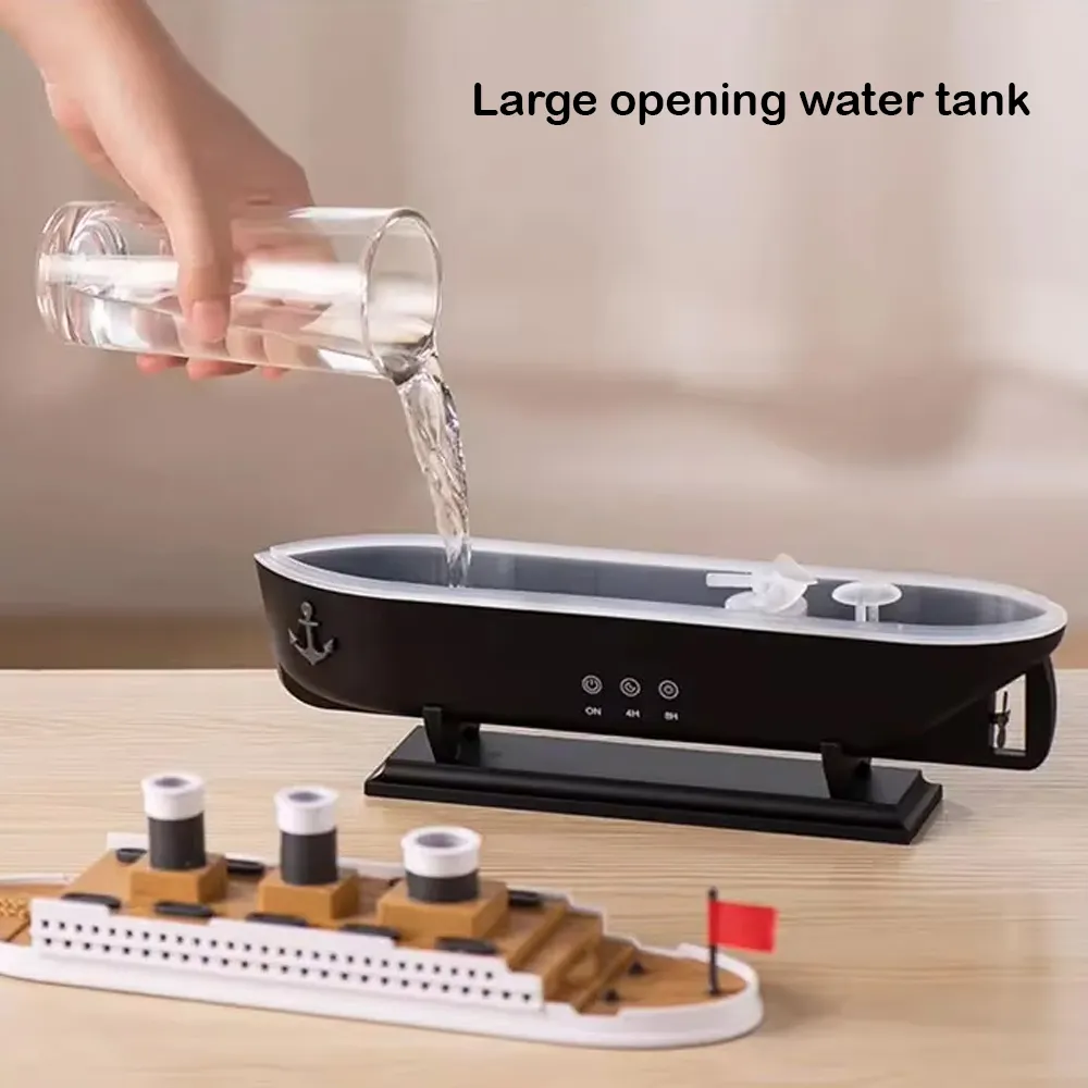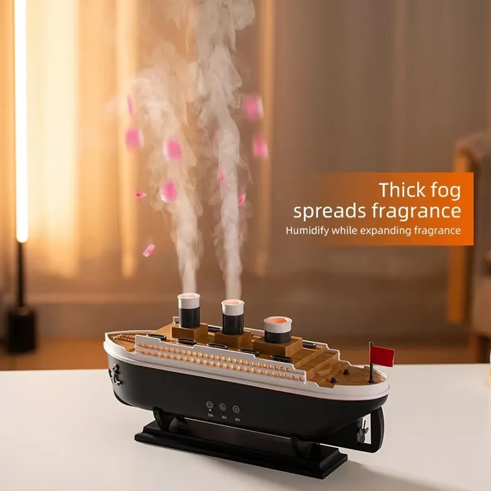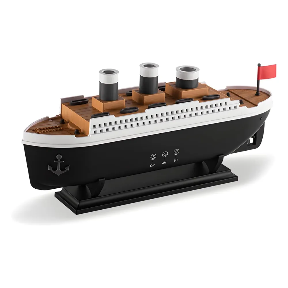 The Titanic Ship Air Humidifier is a unique and eye-catching addition to any room. Designed as a miniature replica of the Titanic, it not only improves air quality but also serves as stylish decor. With its jellyfish smoke ring spray and colorful ambient lights, it creates a relaxing and visually appealing atmosphere. The 250ml tank provides continuous mist for better humidity levels, while the simple three-button operation ensures ease of use. It also supports essential oils for added aromatherapy benefits, making it perfect for homes, offices, or bedrooms.