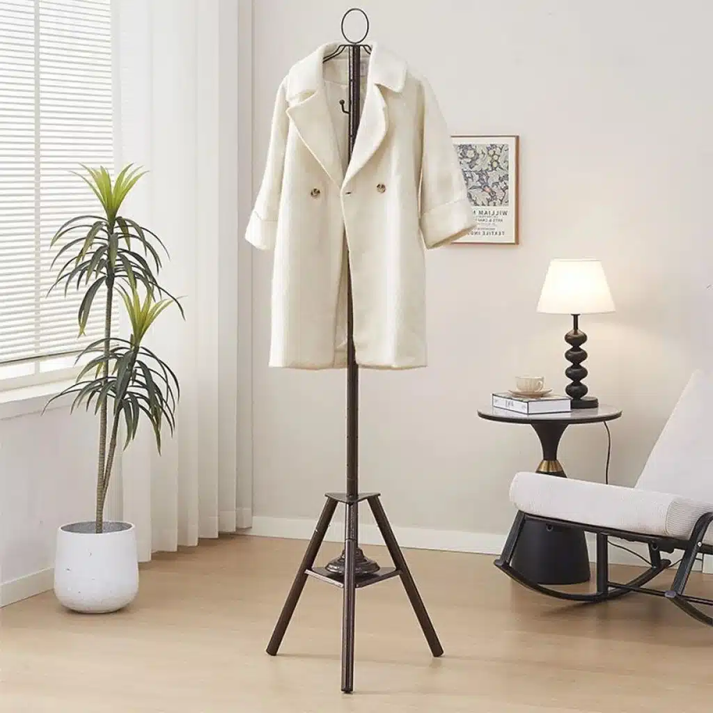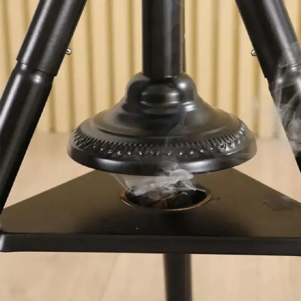 Add elegance and functionality to your space with the Tripod Metal Cloth Incense Burner, designed to freshen clothes and enhance your room's ambiance at the same time. Its durable metal construction and stable triangular base ensure safety and long-lasting use. The clever design combines a coat rack, incense burner, and fragrance diffuser, making it ideal for homes, meditation spaces, or offices. With six smooth hooks for easy hanging and a space for incense or spices, it provides both practicality and a soothing atmosphere.