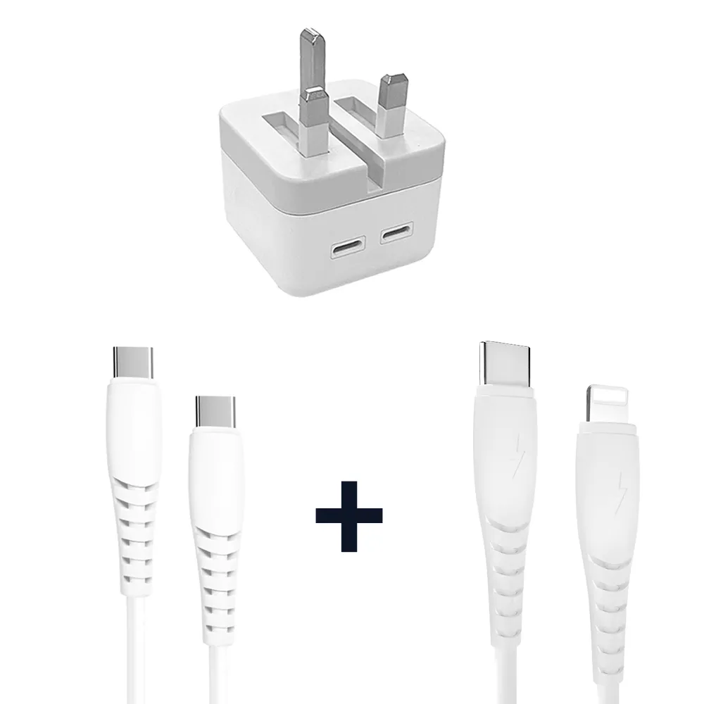 Pama 50W power adapter with 3A type-C to C and PD20W C to lightning data cable is your ultimate multi-device solution with safely charger with 5000+ bend lifespan and It delivers rapid 50W power.