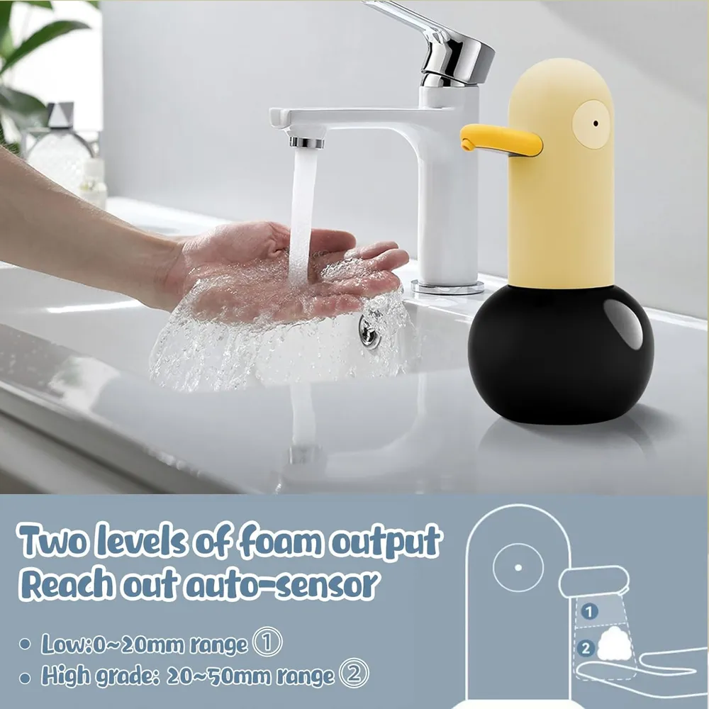 The Rechargeable Cute Duck Automatic Foaming Soap Dispenser is a fun and practical addition to any bathroom or kitchen. Designed with a touchless infrared motion sensor, it dispenses foam in just 0.25 seconds for quick and hygienic hand washing. Its 400ML large capacity and USB rechargeable battery mean fewer refills and no need for frequent charging—perfect for busy families and kids. The adorable duck design not only encourages children to wash their hands but also adds a playful touch to your space. With waterproof construction and an automatic cleaning feature, it’s built for easy maintenance and long-term use.
