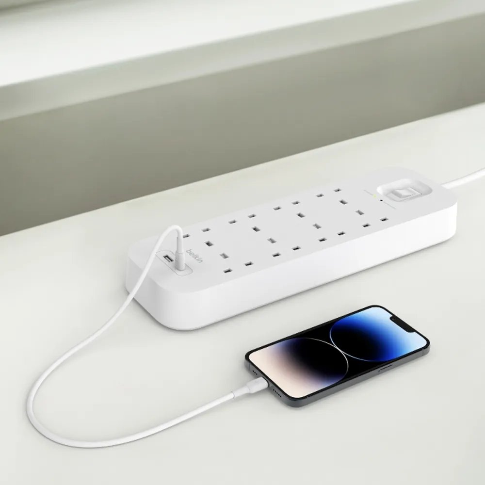 Keep your electronic devices protected with 900 joules of surge protection and USB-C and USB-A ports for added convenience. Built with safety in mind, the protection indicator light signals your devices are safe. Save time with USB-C PD that charges current gen devices up to 70% faster than traditional 5W chargers.