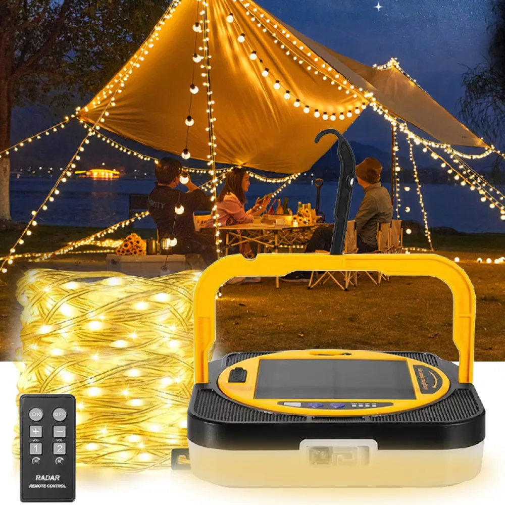 Light up your adventures with the Multicolour Camping Light String—an all-in-one, portable lighting solution designed for both fun and emergencies. Featuring three adjustable color temperatures and vibrant RGB options, this versatile LED light is perfect for camping, backyard gatherings, or power outages. With dual charging modes—solar and USB Type-C—it ensures you’re never left in the dark. The built-in power bank even lets you charge your mobile devices on the go. Its waterproof and durable nylon construction withstands tough weather, while the included remote control and hanging hook make setup quick and convenient. Whether you're outdoors or indoors, this light string combines function, flexibility, and fun in one compact design.