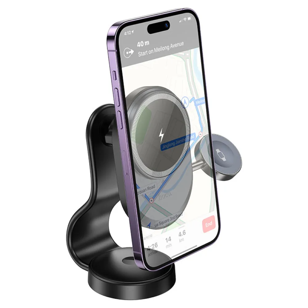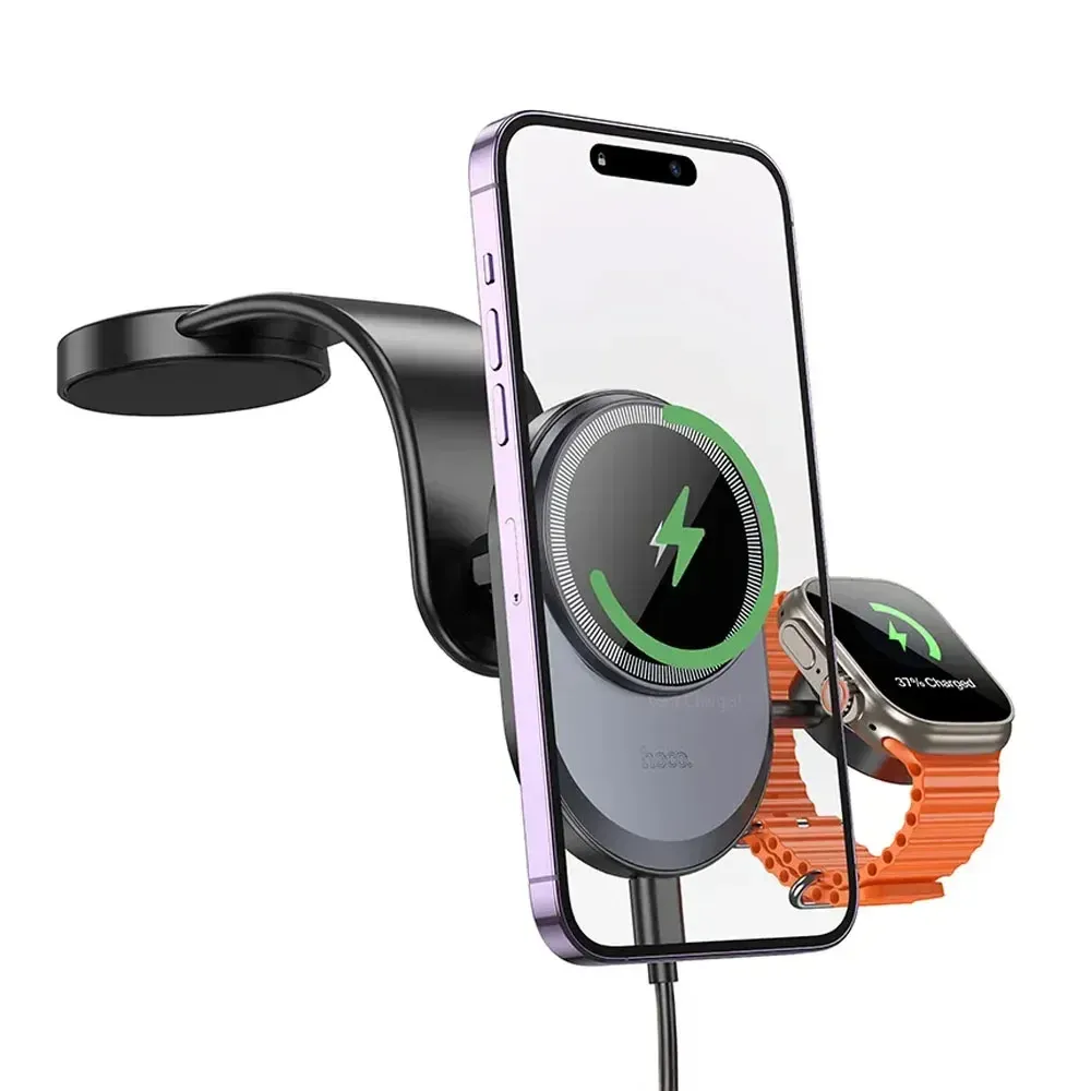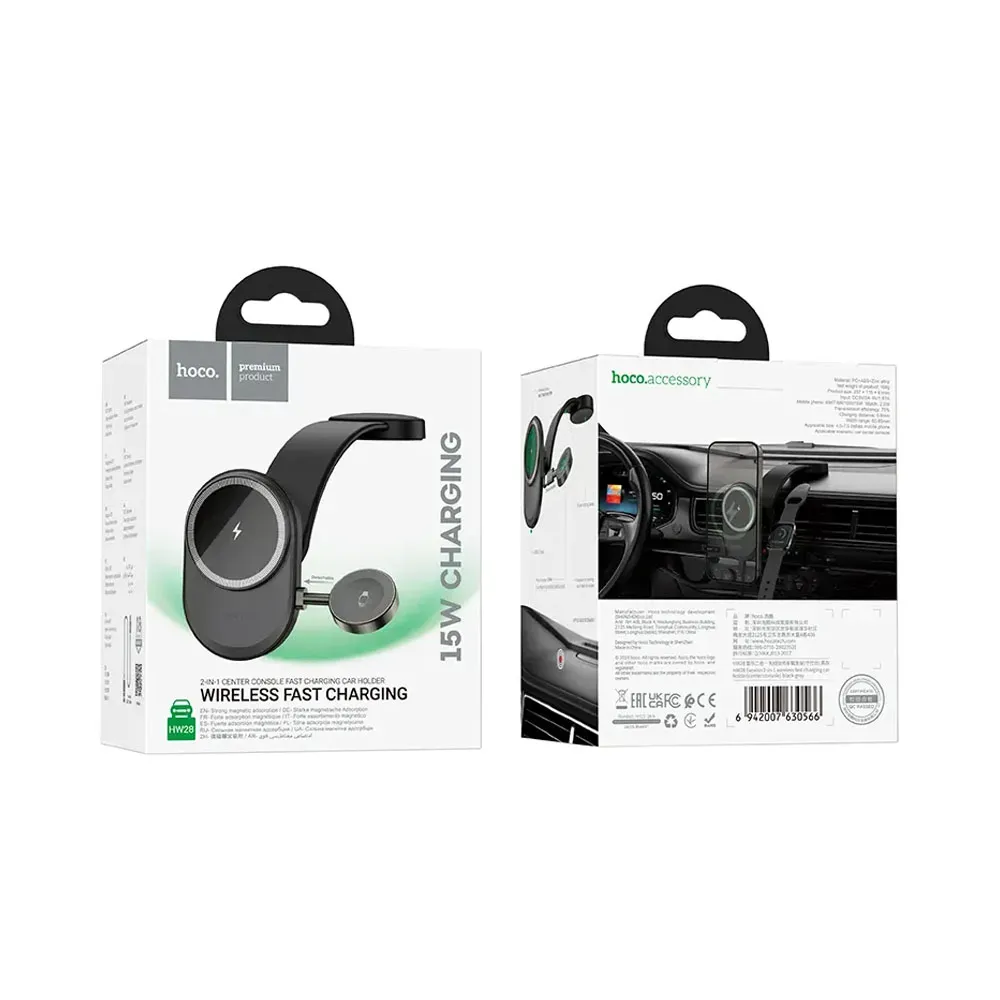 The Hoco HW28 Excelso 2-in-1 Wireless Car Holder is designed to keep your devices powered and secure while on the road. With 15W fast wireless charging, it ensures your phone stays charged even during long drives. It also supports 2.5W wireless charging for smartwatches, making it a versatile all-in-one solution. Its MagSafe compatibility provides strong magnetic alignment for stability, while the adhesive mounting ensures a firm hold on different surfaces. Built with durable materials and an ergonomic design, it combines convenience, reliability, and style. Perfect for drivers who want efficiency, safety, and practicality in a single device.