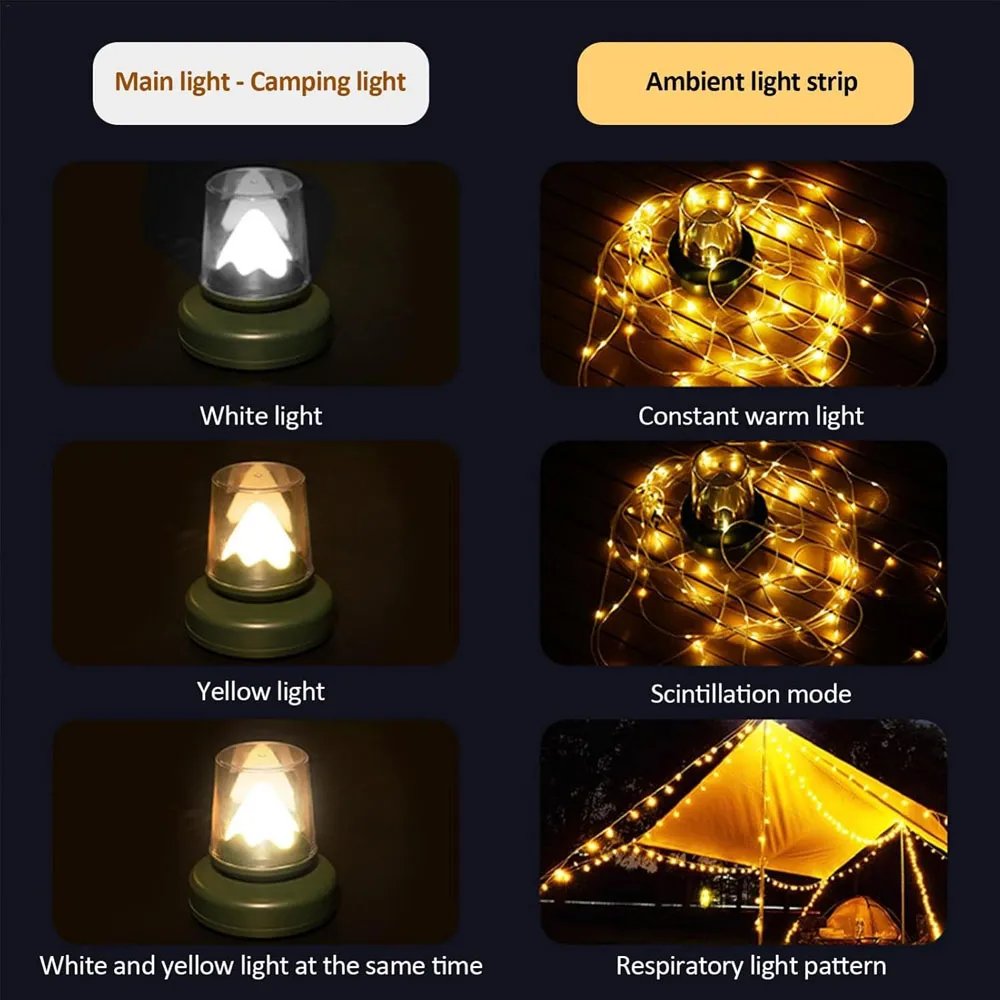 The bright lantern and adjustable string lights into one compact, retractable design, perfect for all your outdoor adventures. With multiple lighting modes, you can easily customize the brightness and ambiance to suit your needs—whether you're camping, hiking, or enjoying a backyard gathering. Its vintage retro look adds charm while providing practical, reliable lighting. Rechargeable and portable, this 2-in-1 lighting solution offers long-lasting use without taking up space. Easy to store and carry, it’s the ideal companion for creating the perfect outdoor atmosphere anytime, anywhere.