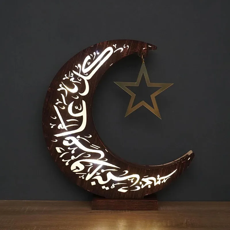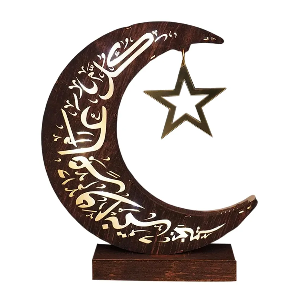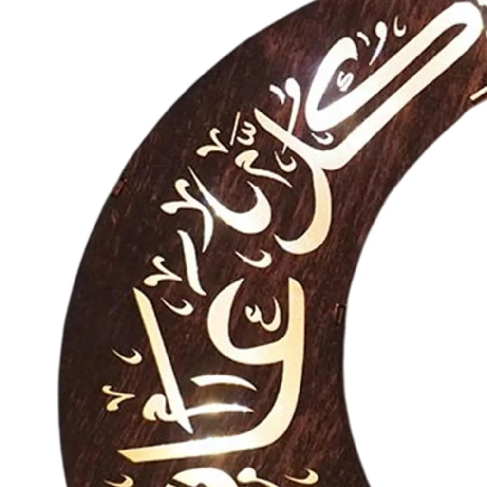 Woden Ramadan Moon Decorative lampA modern moon lamp designed exclusively for Ramadan Decorations Brown 12x3x14inch Decorative Showpiece - 10 cm.