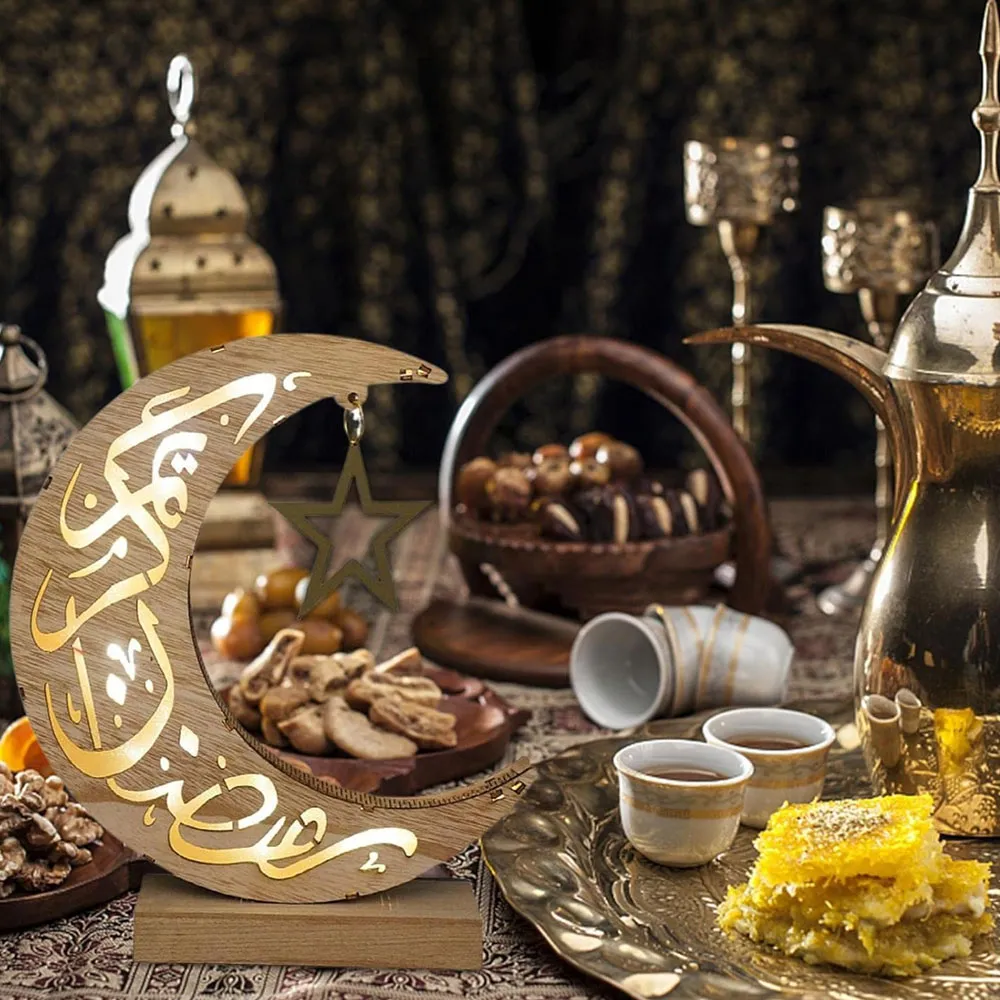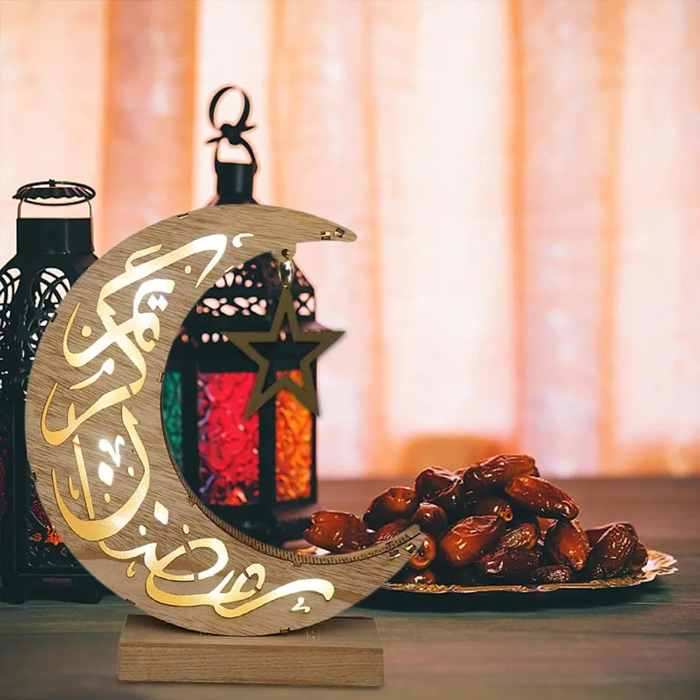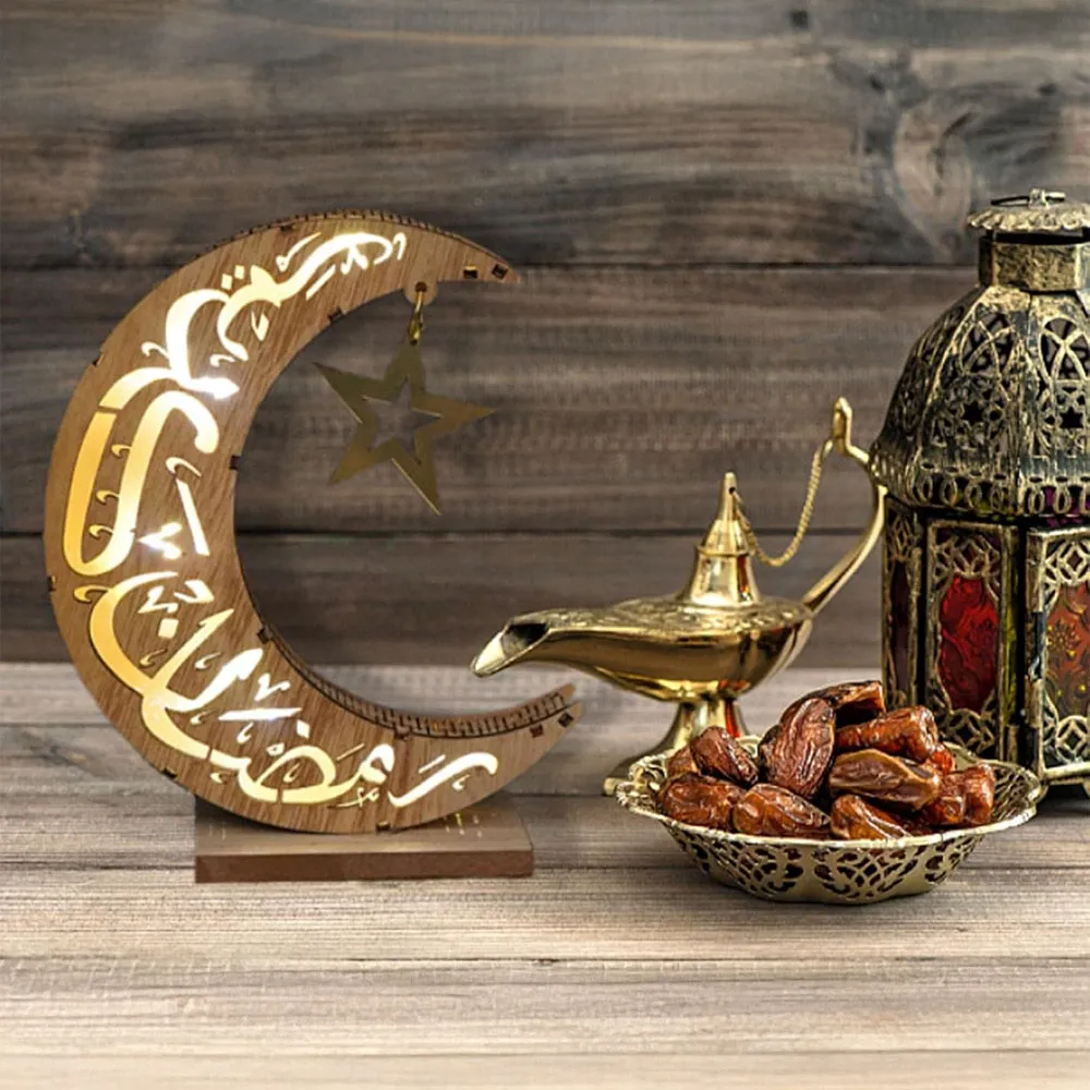 Ramadan Decorations Lanterns - Ramadan Mubarak Lanterns, Wooden Eid Mubarak Ramadan Moon Star Palace Lights, Tabletop Ornaments, Ramadan Decoration for Muslims Islamic Festival Gifts Party Décor.