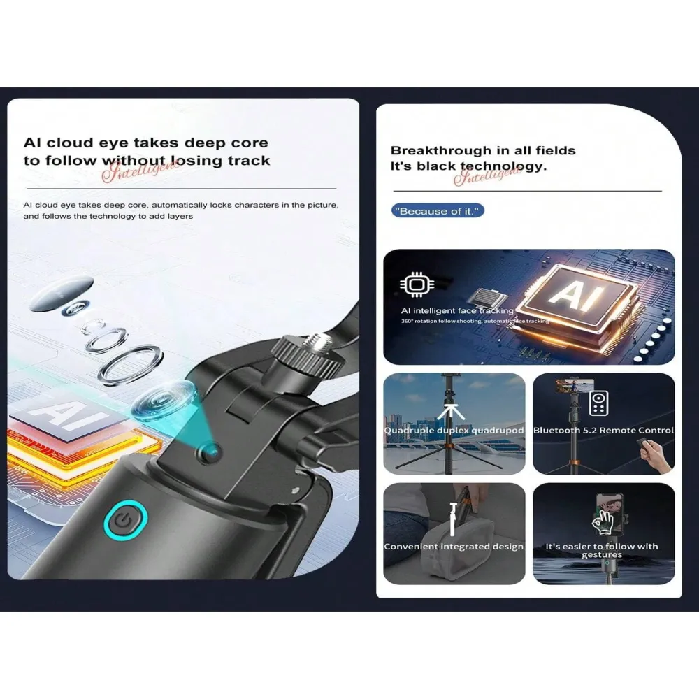 The Q13 AI Tracking Selfie Stick with Wireless Tripod Stand is the perfect all-in-one solution for anyone who loves creating high-quality photos and videos. Combining a stabilizer, tripod, and selfie stick in one, it offers unmatched convenience for vloggers, travelers, and social media enthusiasts. Its AI-powered tracking keeps you perfectly centered, while the detachable Bluetooth remote allows effortless, hands-free shooting. The extendable and adjustable design ensures you capture the perfect angle every time. Lightweight and portable, it’s easy to carry anywhere, making it an ideal companion for content creation on the go. Compatible with both iOS and Android devices, it delivers a seamless and versatile user experience.