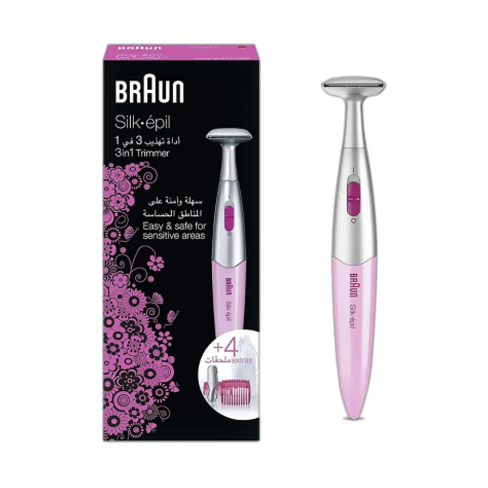 The Braun Silk Epil 3 in 1 Trimmer is a compact, high-precision hair removal tool designed for smooth, radiant skin. With a slim bikini head, Micro-Grip technology, and two trimming combs, it offers salon-quality results at home. Ideal for sensitive areas, this waterproof trimmer makes grooming gentle, fast, and effortless.