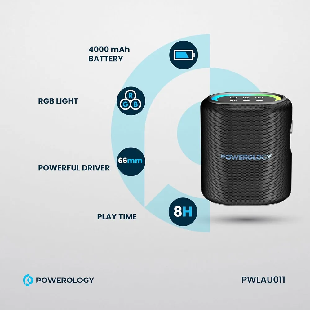 Enjoy powerful, room-filling sound with the Powerology Portable Loud Speaker, designed for music lovers who want performance and portability in one device. With its 25W output and large 66mm driver, it delivers rich, immersive audio for both indoor and outdoor use. The 4000mAh battery keeps the music going for up to 8 hours, while Bluetooth 5.0 ensures a seamless connection every time. Compact, durable, and enhanced with vibrant RGB lights, this speaker doesn’t just play music—it creates an experience. Whether you’re hosting a party, relaxing at home, or heading outdoors, it’s the ultimate audio companion.