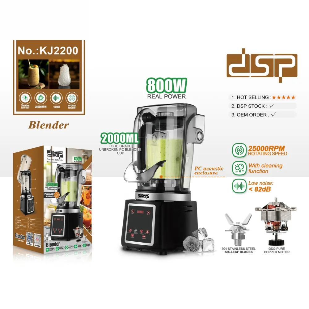 Enjoy effortless blending with the DSP 800W High-Speed Blender, designed for powerful performance and convenience. With 25000RPM speed and six-leaf stainless steel blades, it ensures smooth and consistent results. The low-noise operation (<82dB) and self-cleaning function make it a perfect addition to any modern kitchen.