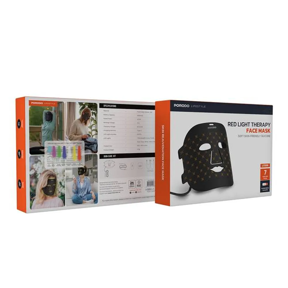Porodo Lifestyle Red Light Therapy Face Mask uses seven-color LED light therapy to refresh and improve your skin's appearance, providing a skincare experience of professional quality. It comes with 62 premium LED lights that shine in colors like red, blue, green, cyan, purple, yellow, and white. These lights help create collagen, reduce flaws, and give you a more even skin tone.
