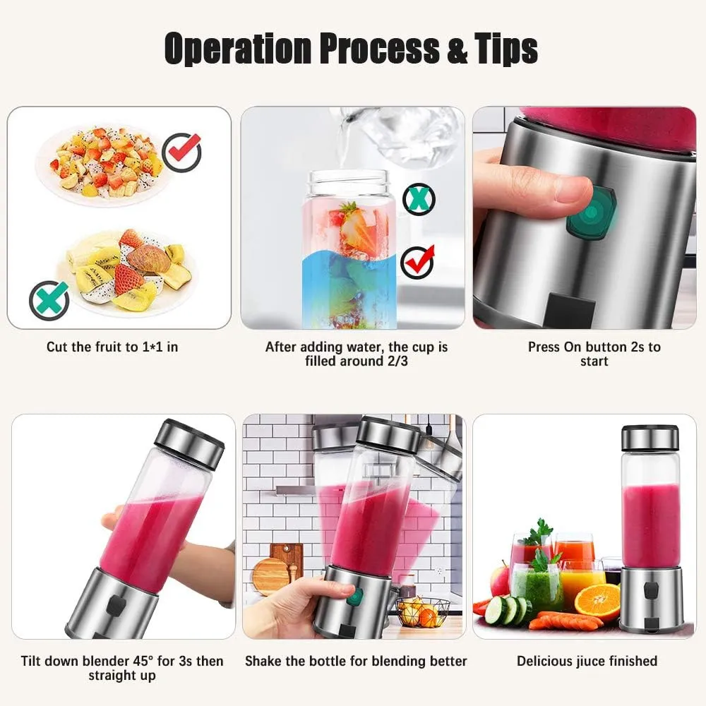 Blend your favorite drinks anytime, anywhere with the Portable USB Rechargeable Blender. Designed for convenience, this 450ML blender allows you to make fresh smoothies, shakes, and juices on the go. Featuring a USB rechargeable battery, powerful stainless steel blades, and a compact, lightweight design, it’s perfect for travel, gym, office, or home use.
