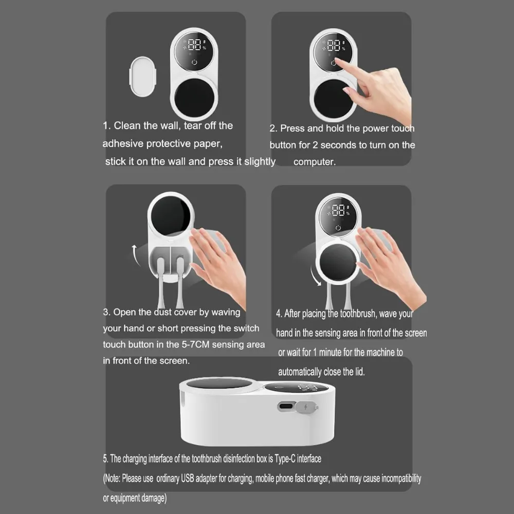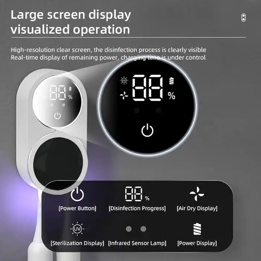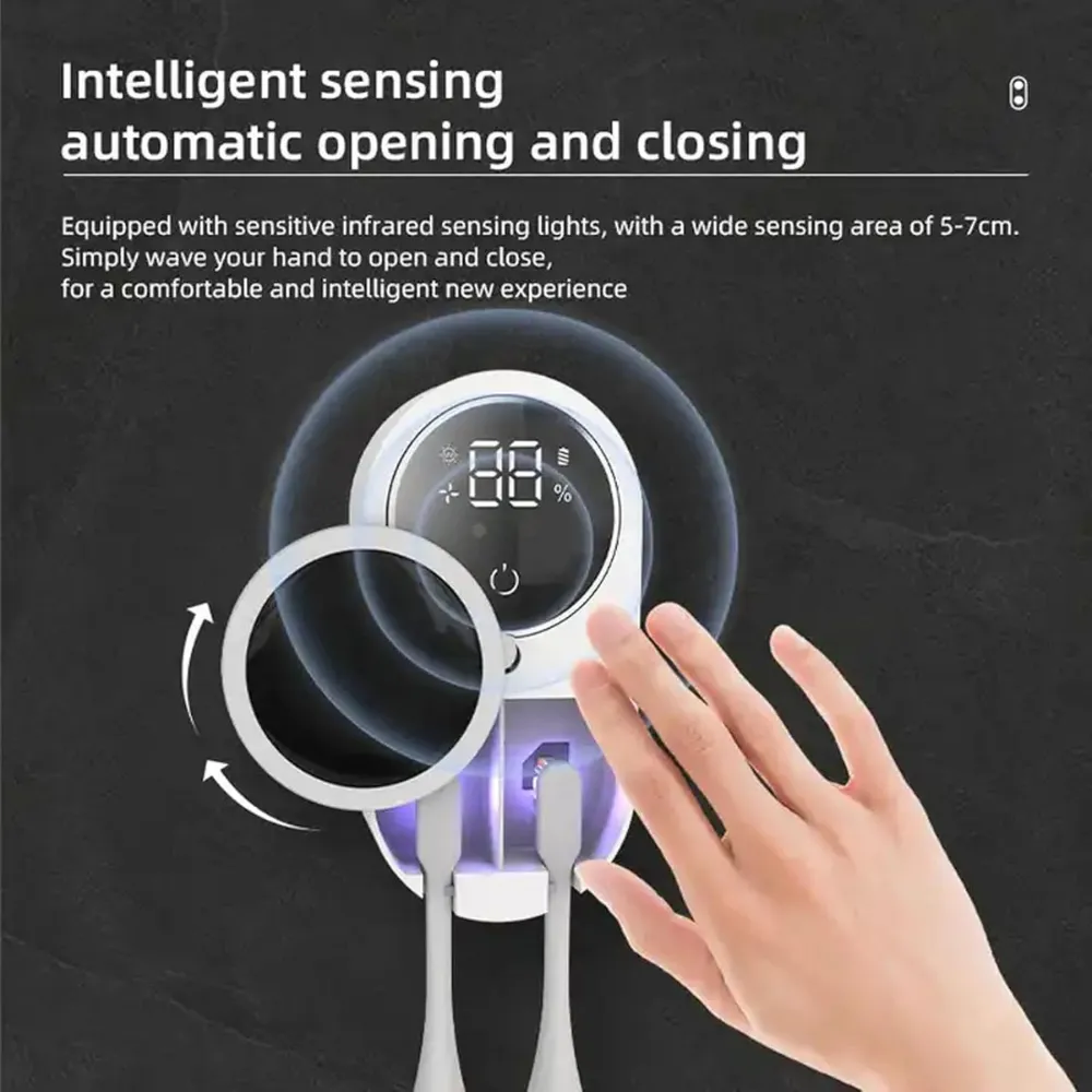 Keep your toothbrushes germ-free with the Wall-Mounted Smart UV Toothbrush Sanitizer, designed to eliminate bacteria and ensure a hygienic oral care routine. Equipped with built-in UV purification and an intelligent sensor, this sanitizer automatically disinfects your toothbrush while providing hands-free convenience. Its space-saving wall-mounted design makes it a perfect addition to any bathroom.