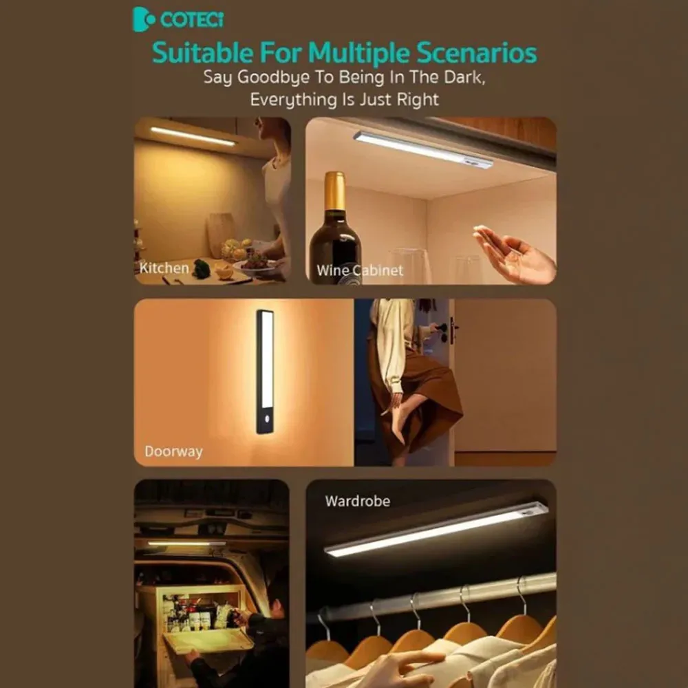 Coteci Motion Sensor Soft Tri-color Smart Sensor under Cabinet Light is an innovative and practical product that takes smart lighting technology to a new level by bringing together and offering multiple features in a very compact package. This sensor light is equipped with a PIR motion sensor that automatically turns on and off when motion is detected, thereby saving energy from its internal battery.