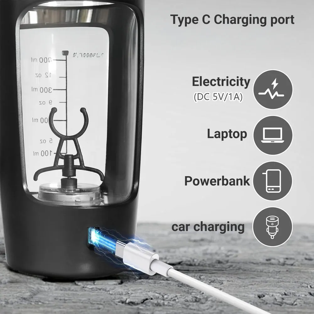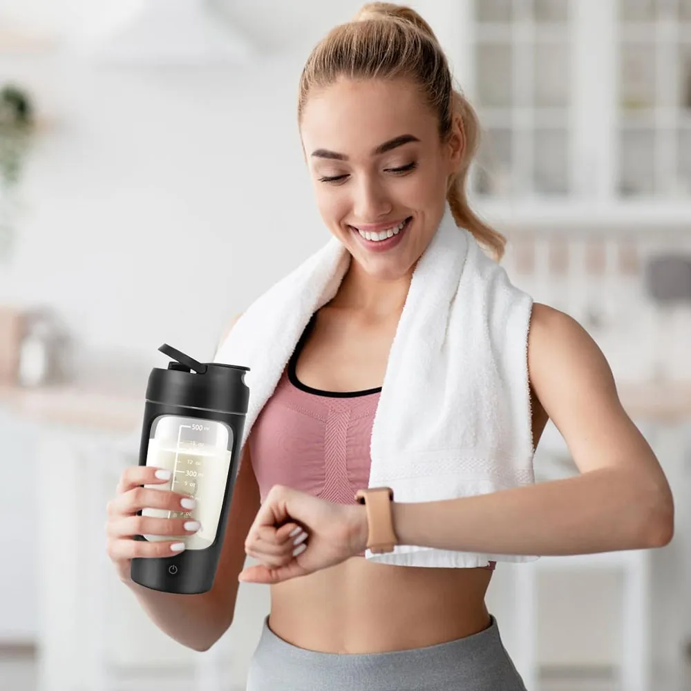 Electric Mixing Cup-500ml Built-in Protein Powder Storage - 22 oz, USB-Rechargeable, for Sports and Workouts, Automatic Mixer Bottle for Protein Shakes, Easy to Use, Easy to Clean.