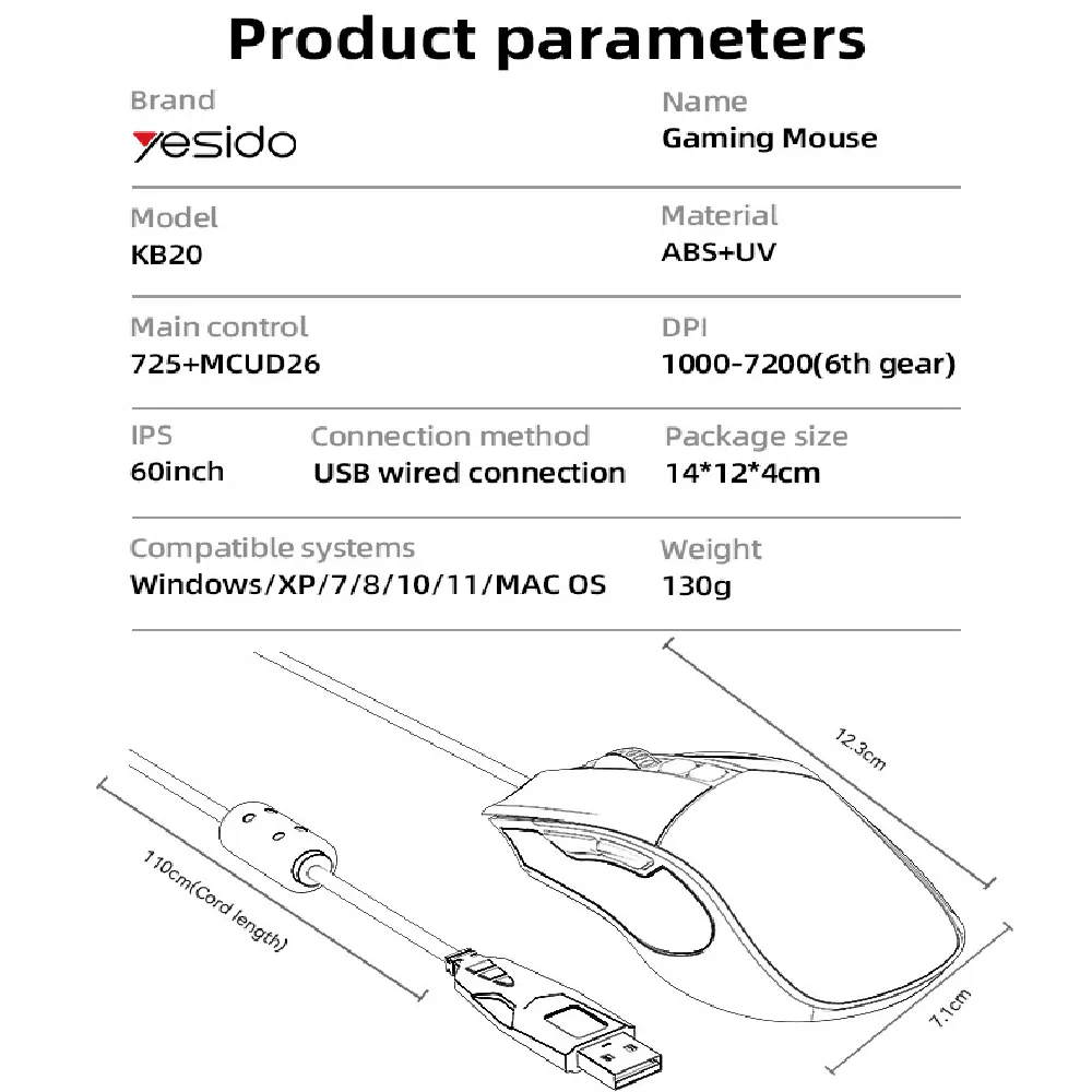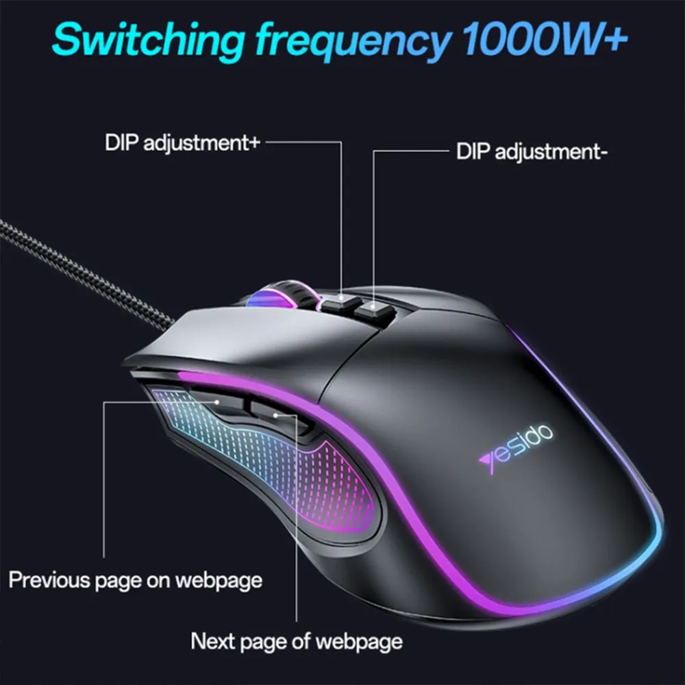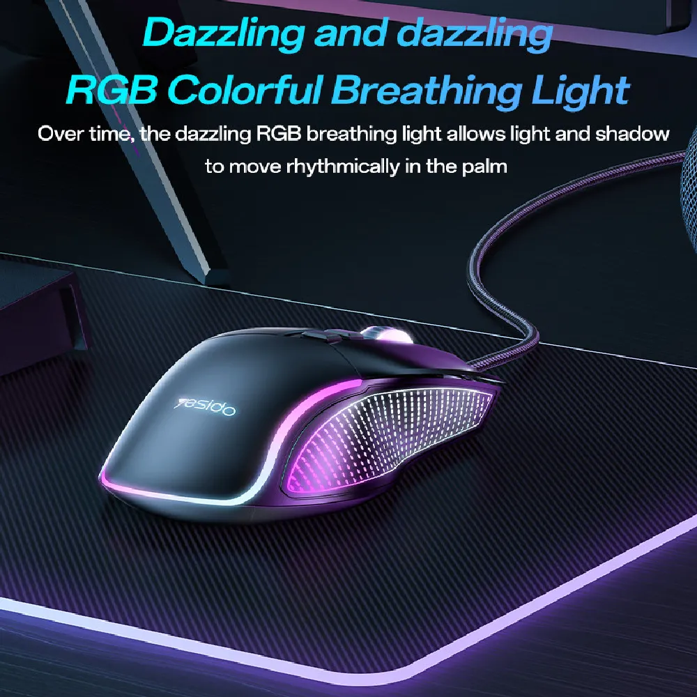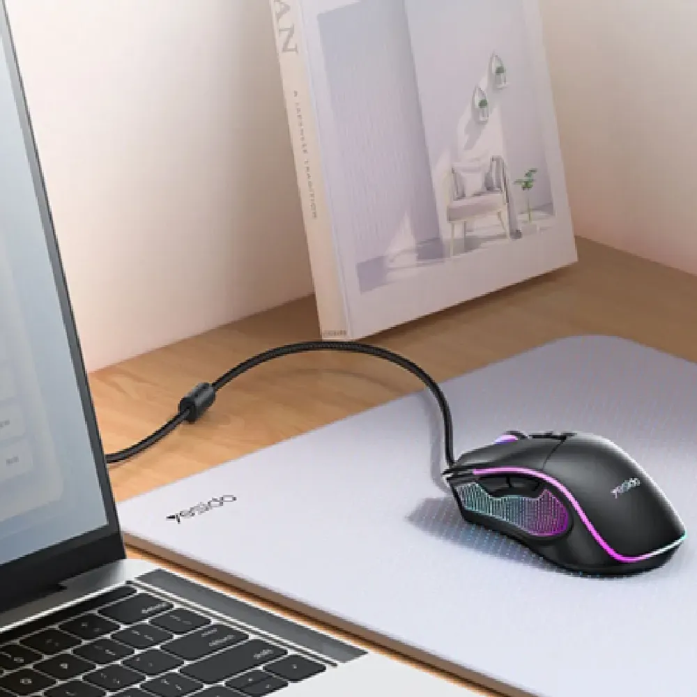 Designed for gamers who demand speed, precision, and style. Powered by a professional-grade chip and a high-precision 7200DPI optical sensor, it ensures ultra-fast response and accurate control. With 6 adjustable DPI levels, players can easily switch between fast movement and precise targeting. The ergonomic design fits comfortably in your hand, reducing fatigue during long gaming sessions. Vibrant RGB breathing lights add dynamic flair to your setup, while the durable nylon braided cable ensures long-term performance. This mouse is plug-and-play ready, delivering a competitive edge right out of the box.