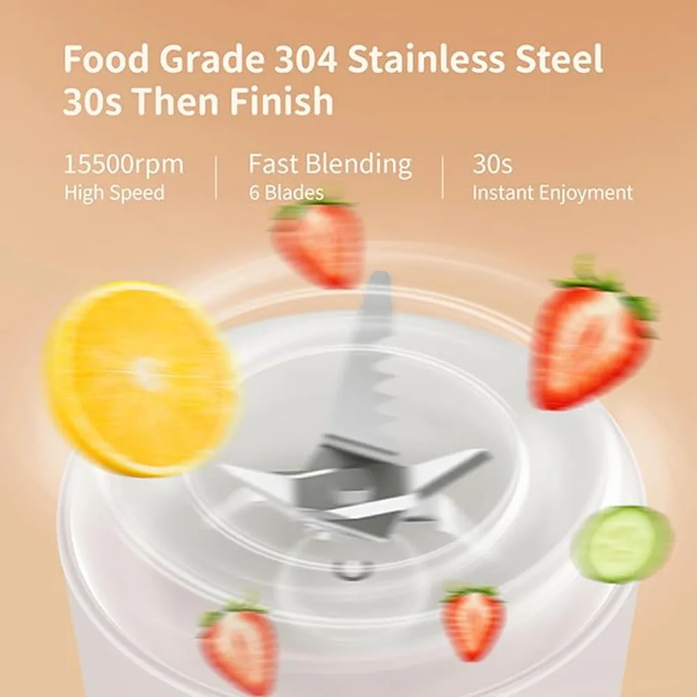 This Portable Mini Blender is designed for smoothie lovers who want fresh nutrition on the go. With a powerful 6-blade system and upgraded 2400mAh battery, it blends fruits, veggies, and even ice in seconds—anytime, anywhere. Its 500ml capacity makes it perfect for daily fitness drinks or quick meal prep. Lightweight, stylish, and rechargeable via USB, it’s the perfect companion for the gym, office, travel, or outdoor adventures.