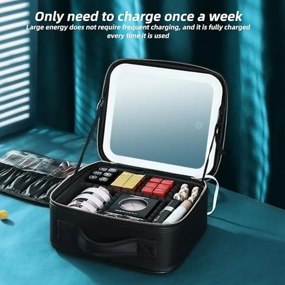 Stay flawless on the go with the Smart LED Cosmetic Case, combining powerful lighting, magnification, and organized storage in one sleek design. Featuring a 4K high-definition mirror with intelligent fill light, adjustable color temperatures, and USB rechargeable battery, it offers professional-level clarity and convenience. Whether at home or traveling, this case keeps your makeup routine effortless and precise.