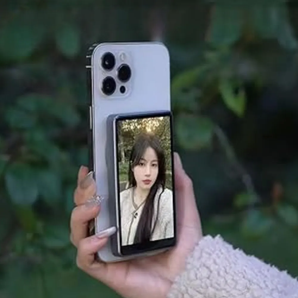 Create high-quality content anywhere with the Magnetic Vlog Selfie Monitor – your personal 4.02” 1080P real-time display. Designed to reflect your rear camera view to the front, it helps you perfectly frame shots for vlogs, TikToks, or livestreams. With a built-in 1080mAh battery, it’s both wireless and wired compatible, offering hours of untethered creativity. Its strong magnetic attachment makes setup effortless, especially for iPhone users.