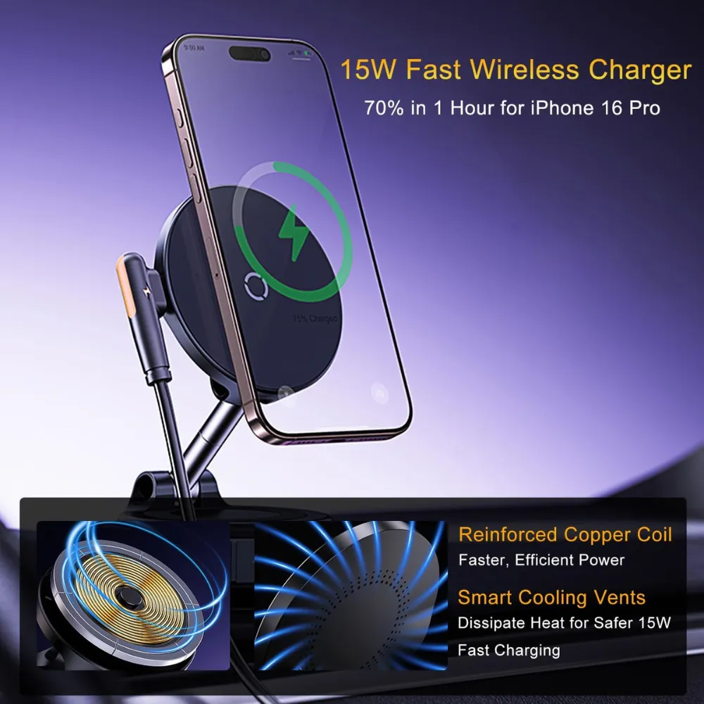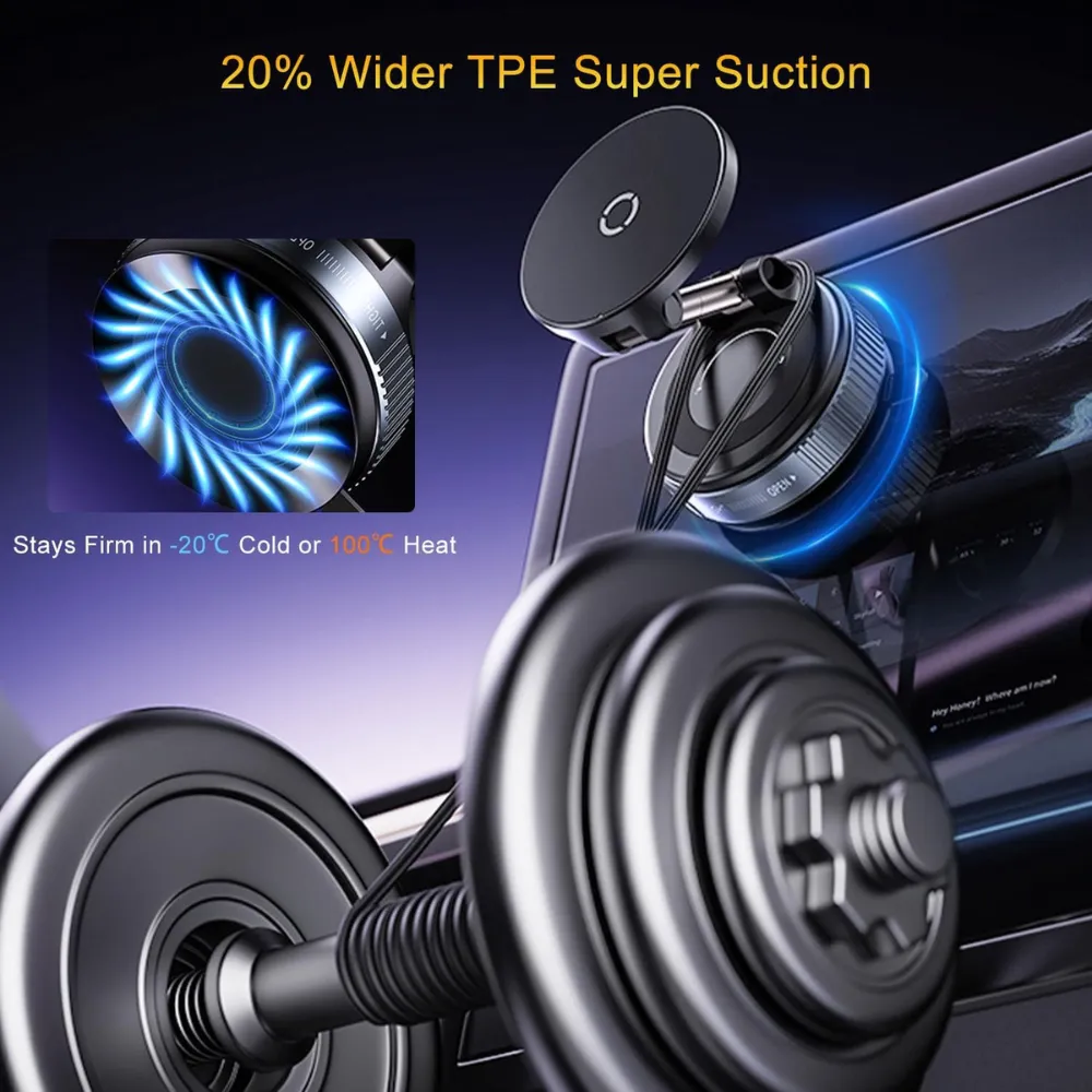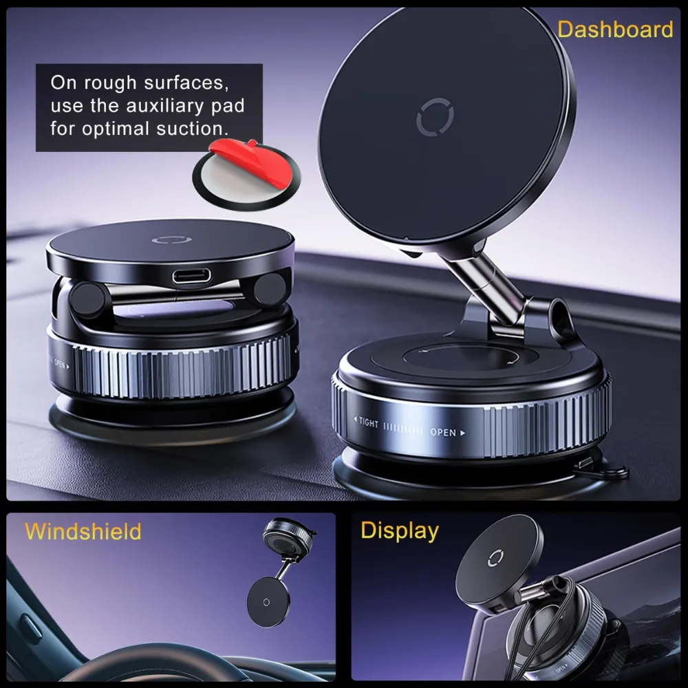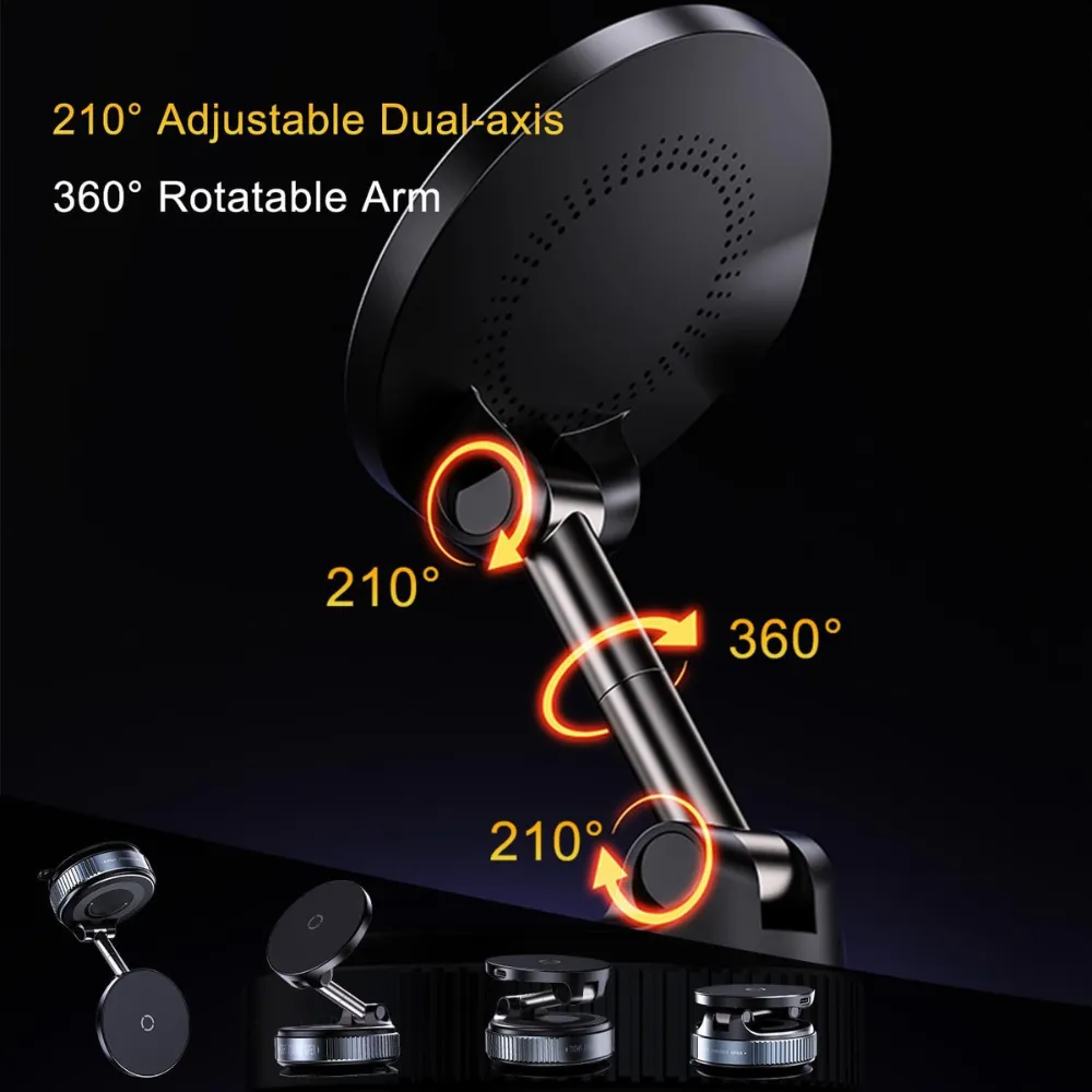 Experience a smarter, safer drive with 15W Wireless Vacuum Magnetic Phone Holder. Designed for ultimate convenience, this innovative mount combines fast charging, ultra-strong magnetic grip, and vacuum suction stability—perfect for every road condition. With its adjustable multi-axis arm and compatibility with all smartphones, it’s the only phone mount you’ll need for daily commutes or long road trips. Charge quickly, mount securely, and drive worry-free.