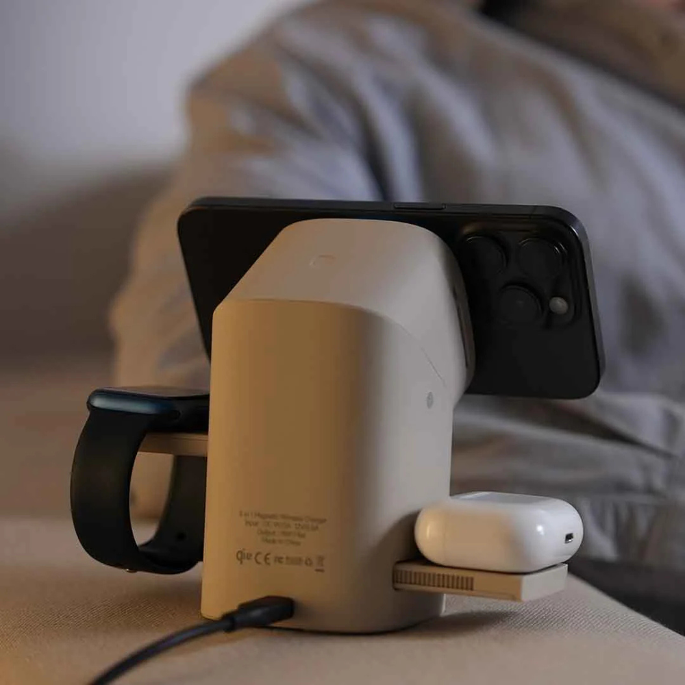 Elevate your charging game with the 3-in-1 Wireless Charger, the perfect blend of function and flair. Featuring fast charging, MagSafe compatibility, and a sleek macaron-inspired color scheme, this product brings harmony and order to your workspace or bedside table. Designed for the modern digital lifestyle, it charges your iPhone, Apple Watch, and AirPods simultaneously while doubling as a stylish tech accessory. Whether at home, work, or on the go, it’s your all-in-one solution for efficient, elegant power delivery.