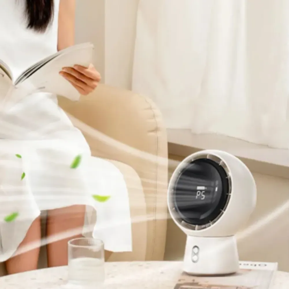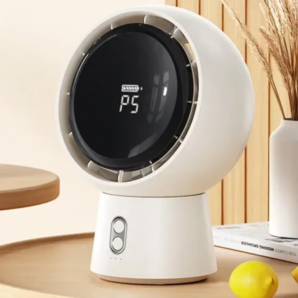 Experience cool, quiet comfort wherever you go with the Cordless Bladeless Desk Fan. Designed with a powerful 5000mAh rechargeable battery, this portable fan delivers strong airflow without the noise or risk of blades. With five customizable wind speeds, intuitive mechanical controls, and a 90° adjustable head, it’s the perfect personal cooling solution for your home, office, or outdoor adventures.