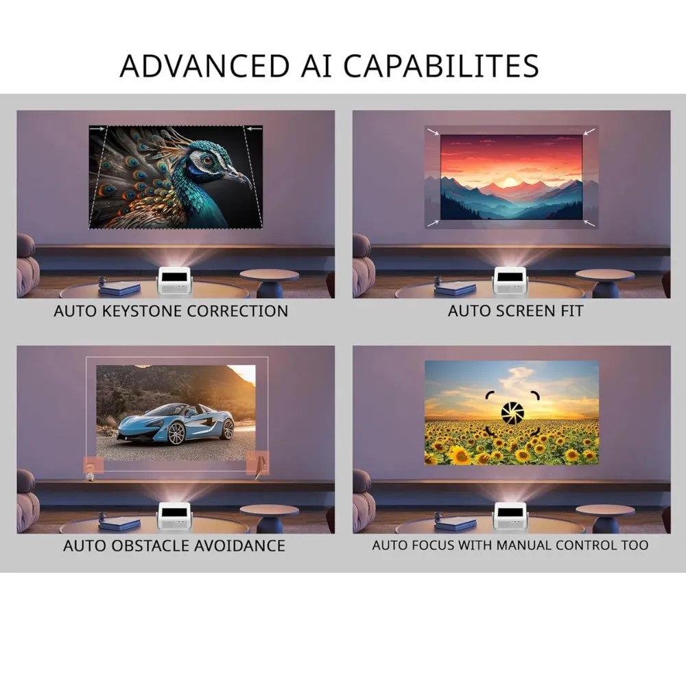 Revolutionize your home entertainment with the Touch Play Smart Projector, the world’s first projector with a touchscreen interface. Enjoy seamless control, intuitive navigation, and a cinematic viewing experience with Full HD 1080p resolution and ultra-bright 11000 lumens. With fully automatic features like Auto Focus, Keystone Correction, Screen Fit, and Obstacle Avoidance, it sets up in seconds for crystal-clear, aligned visuals—no manual adjustments needed. Packed with smart connectivity and premium audio, it’s your all-in-one home cinema solution.