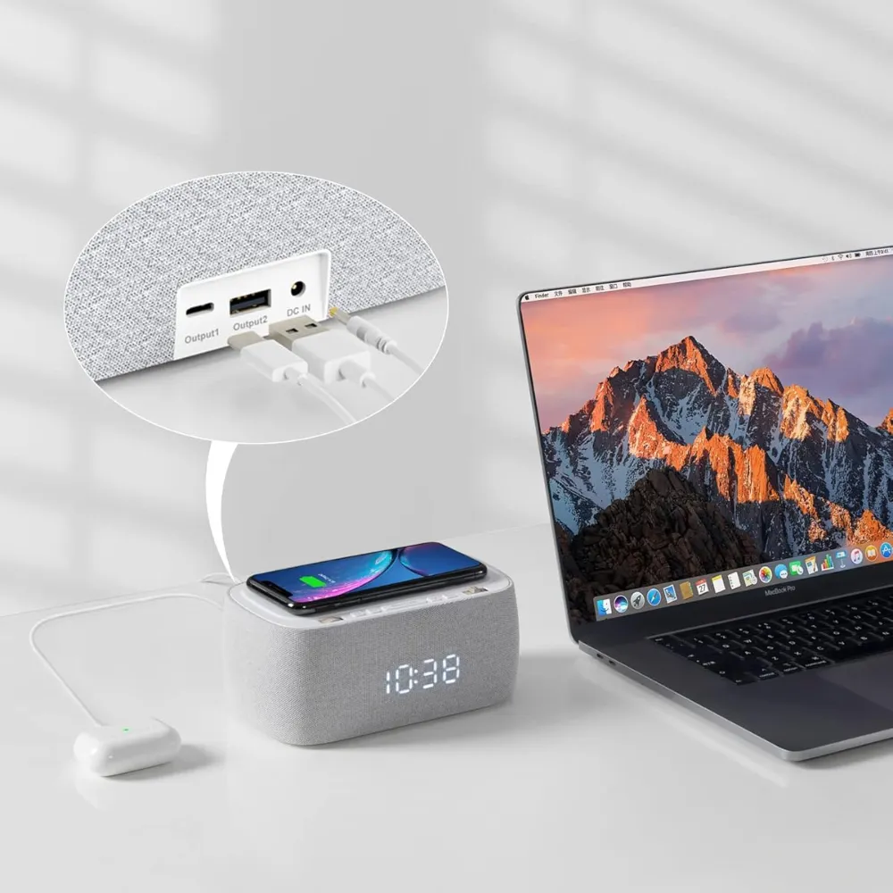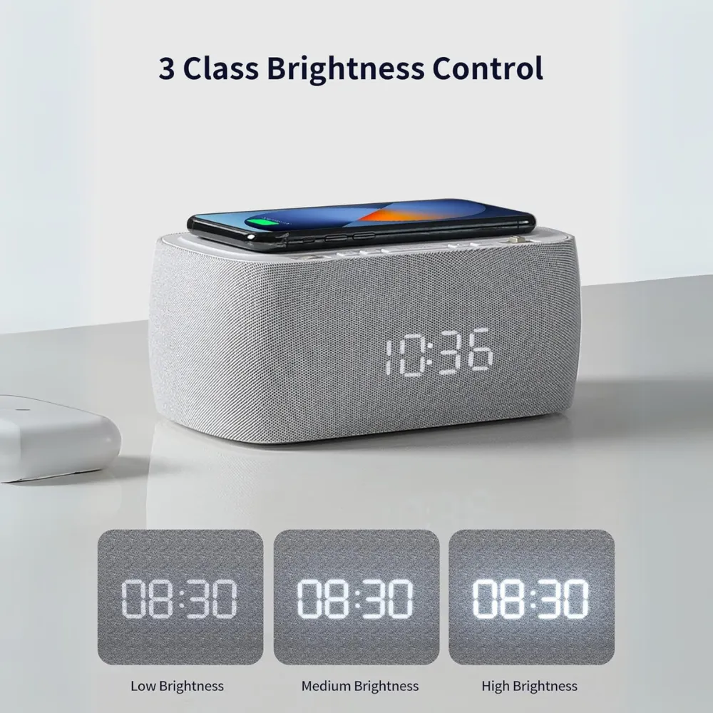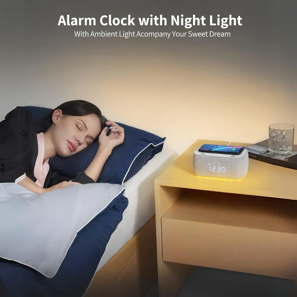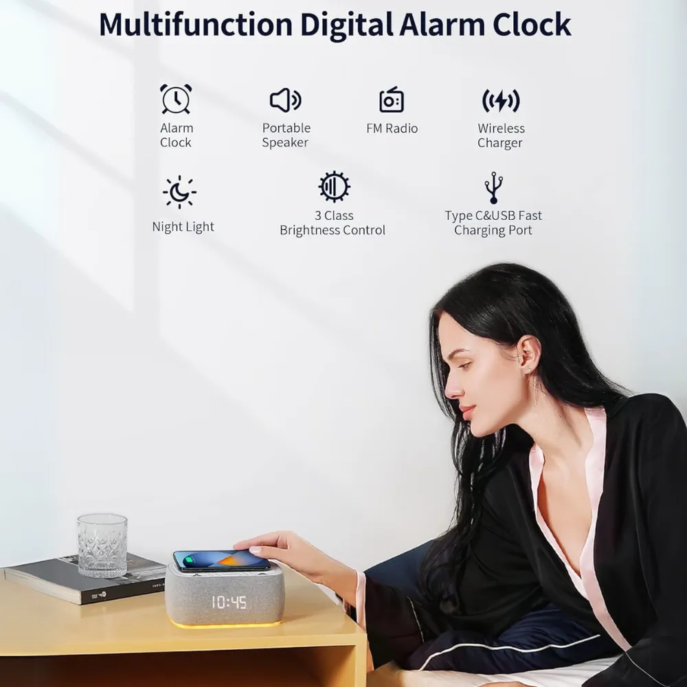 The EZVALO Alarm Clock is more than just a timekeeper—it’s a multifunctional bedside essential. Featuring fast wireless charging, a powerful Bluetooth speaker, FM radio, and a dual alarm system, this all-in-one digital clock is designed to simplify and enhance your nighttime routine. With its sleek design, auto-dimming LED display, and built-in night light, it's the perfect addition to any modern bedroom.