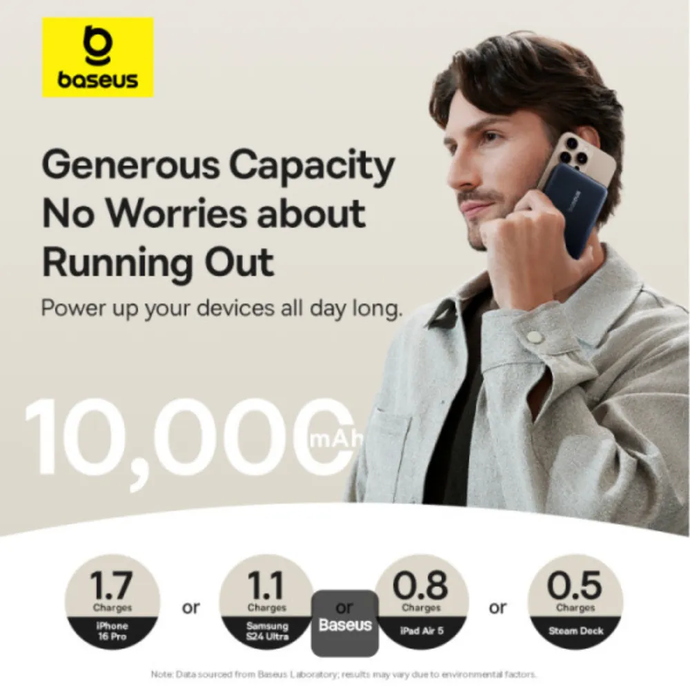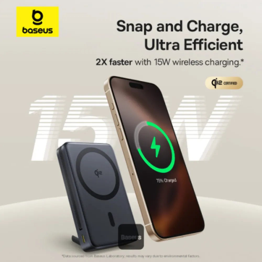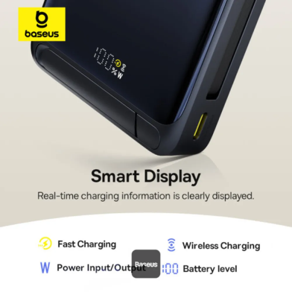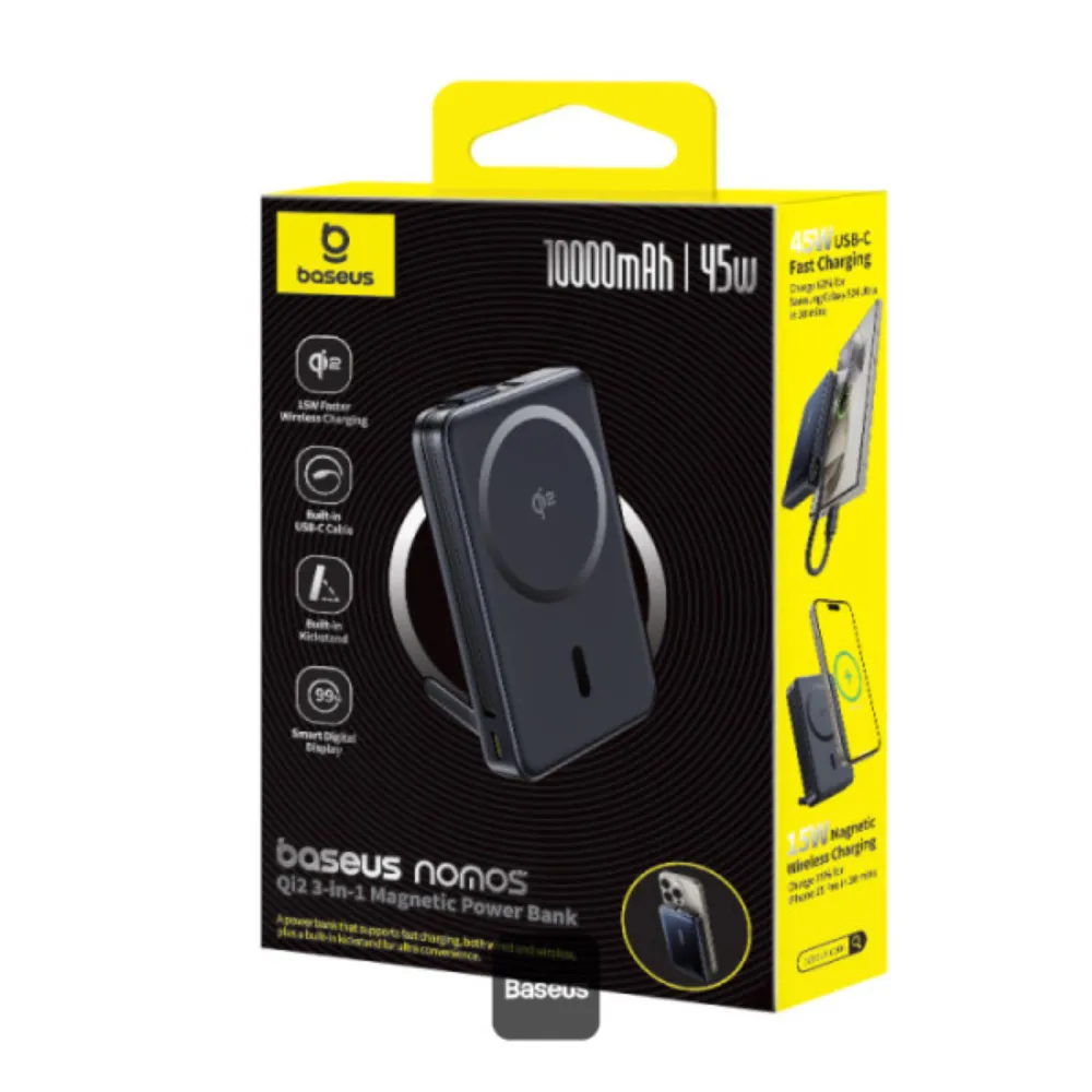 Power up wherever you are with the Baseus Nanos Qi2 3-in-1 Magnetic Power Bank. Packed with cutting-edge features like 15W magnetic wireless charging, 45W USB-C fast charging, a built-in USB-C cable, and an integrated kickstand, this compact power bank offers maximum convenience and versatility in a sleek, travel-friendly design.