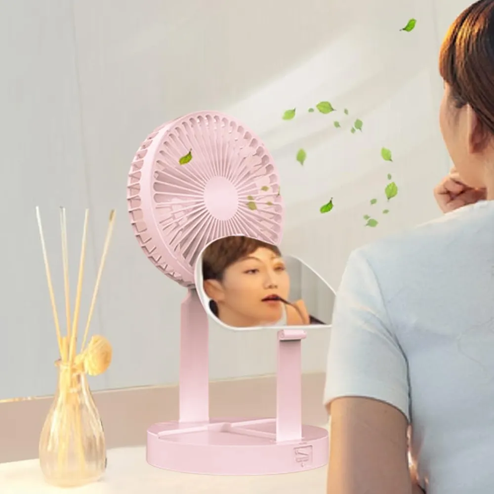 Experience cooling and convenience in one with the Folding Mirror Fan. Designed for portability and multifunctionality, this compact fan features a built-in foldable mirror, 4500mAh rechargeable battery, and a 3-speed wind setting. Its dense safety grid is safe for use around children, while the ultra-quiet operation makes it ideal for work, study, or bedtime. With the added bonus of a mobile phone holder, it’s a perfect all-in-one travel or desktop companion.
