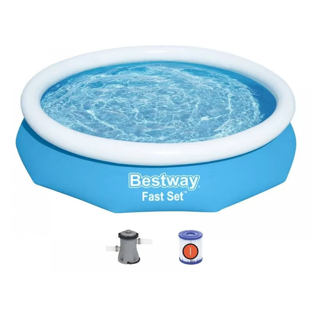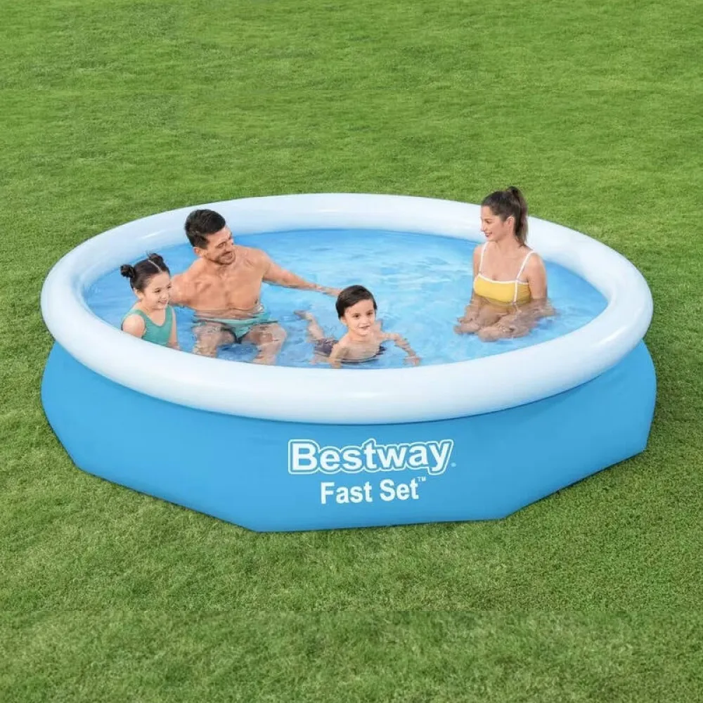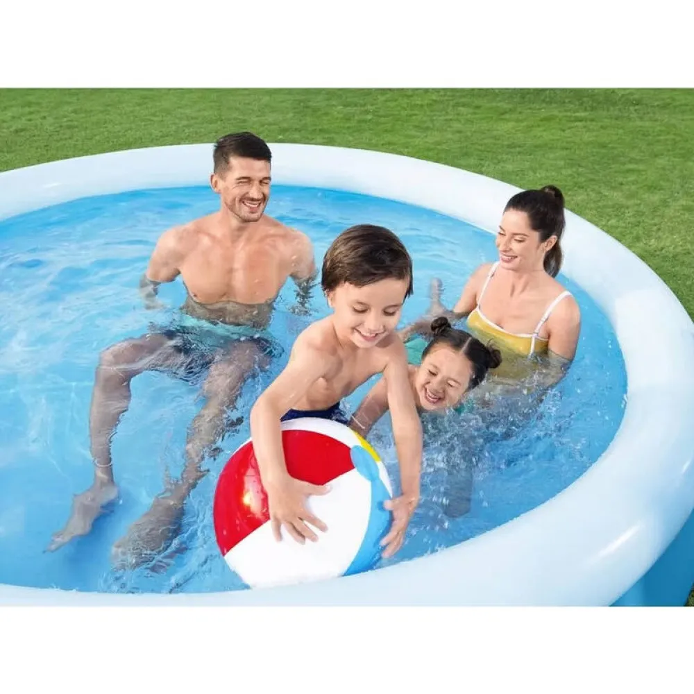 Enjoy instant summer fun with the Bestway Fast Set Swimming Pool, a quick-to-install inflatable pool perfect for backyards and smaller gardens. With a generous 3.05m diameter and durable 3-ply DuraPlus construction, this pool is designed to handle splashes, sun, and play. It includes a high-efficiency 330gal/hr filter pump for clean, clear water all season long. The inflatable top ring design ensures easy setup—just fill and rise for hours of cooling enjoyment.