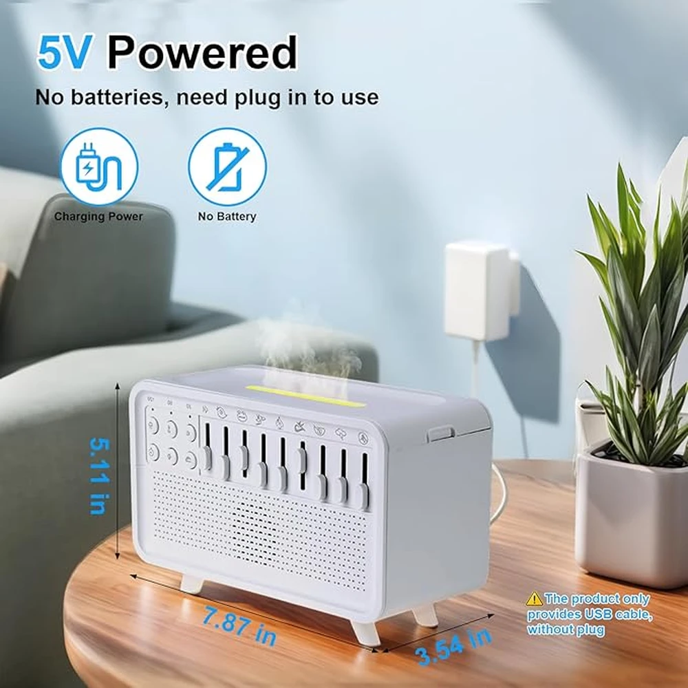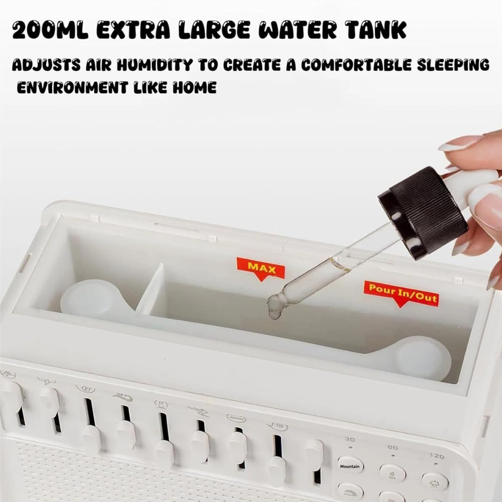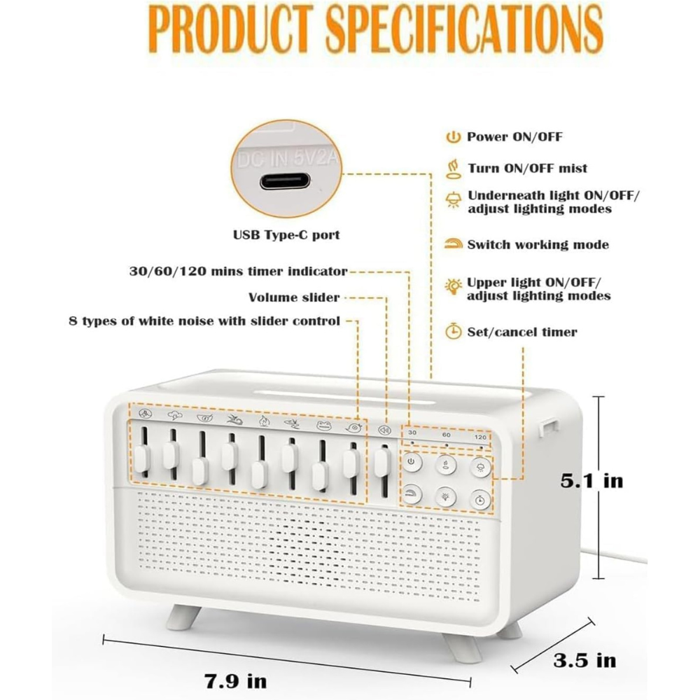 Transform your sleep environment with the White Noise Night Light Humidifier—a multifunctional device combining soothing soundscapes, ambient lighting, and gentle humidity for deeper, uninterrupted sleep. With 8 relaxing nature sounds, Bluetooth 5.3 connectivity, and a 200ml water tank, this all-in-one sleep solution calms busy minds and supports a healthier bedtime routine. Compact and stylish, it's perfect for home or travel