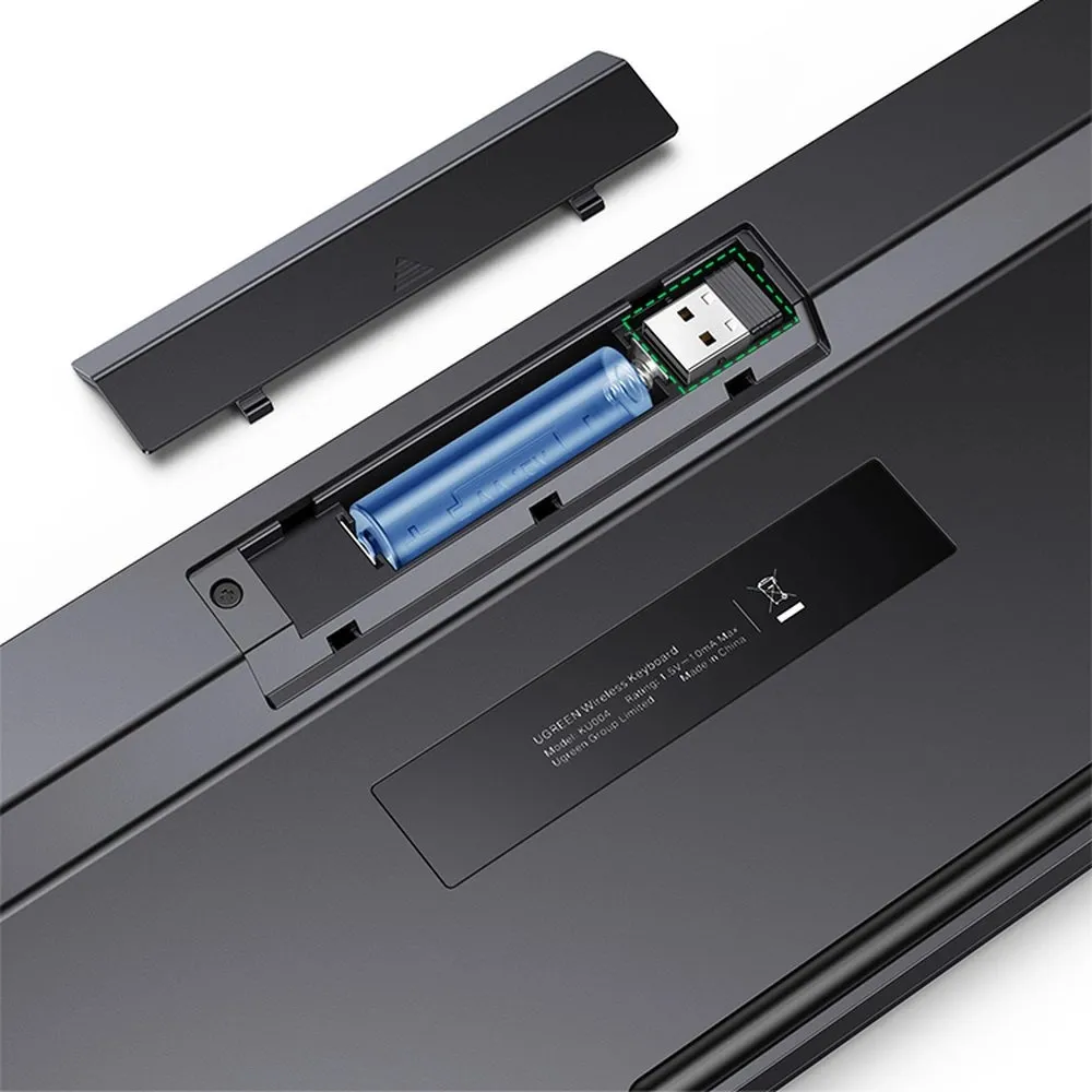 Work efficiently and wirelessly with the Ugreen KU004 90250 Wireless Keyboard, built for comfort, durability, and universal compatibility. Its 2.4GHz stable connection ensures uninterrupted productivity up to 10 meters away, while the full-size layout includes multimedia shortcuts for enhanced convenience. With plug-and-play setup and cross-platform support, it’s the ideal companion for both home and office use.
