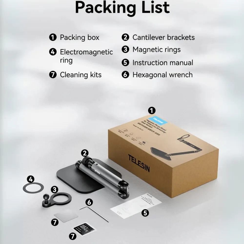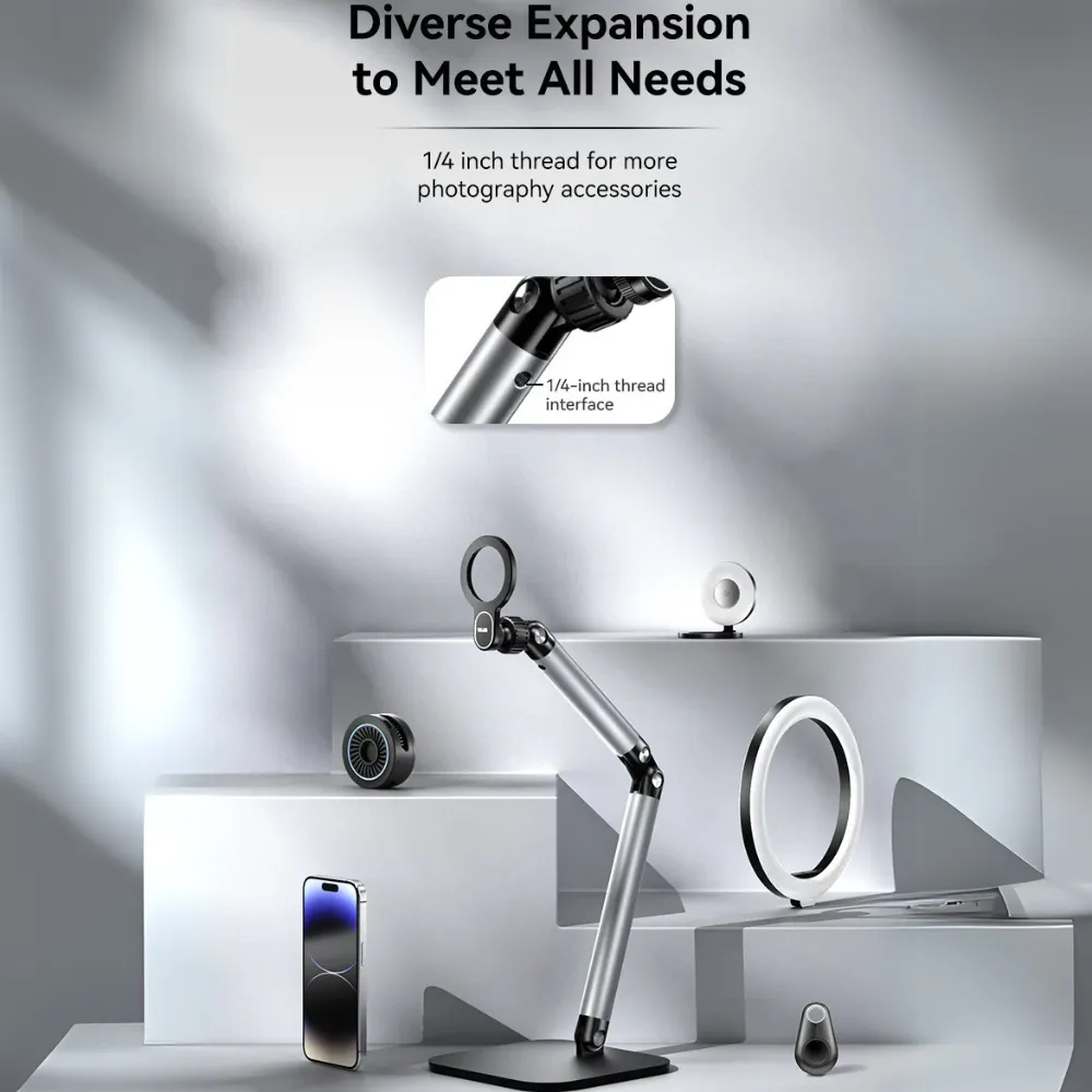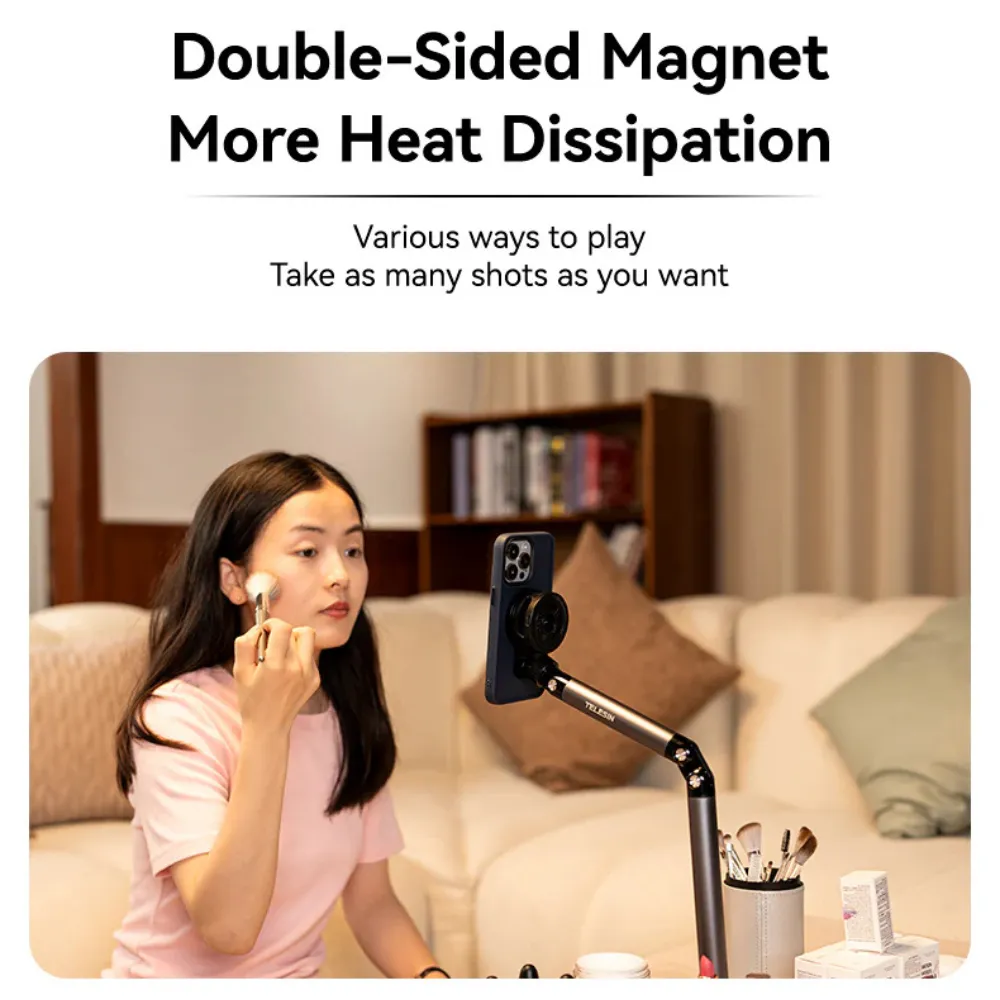 Enjoy hands-free convenience with the TELESIN Magnetic Phone and Tablet Holder – your perfect companion for desk setups, bedside scrolling, or overhead recording. Equipped with N52 strong magnets and a 360° multi-directional rotating base, it provides unmatched flexibility and stability. Whether you're filming content, attending virtual meetings, or binge-watching in bed, this stand is built for every angle and every device.