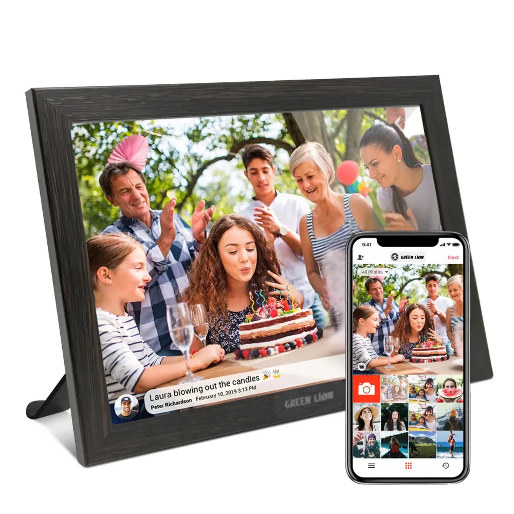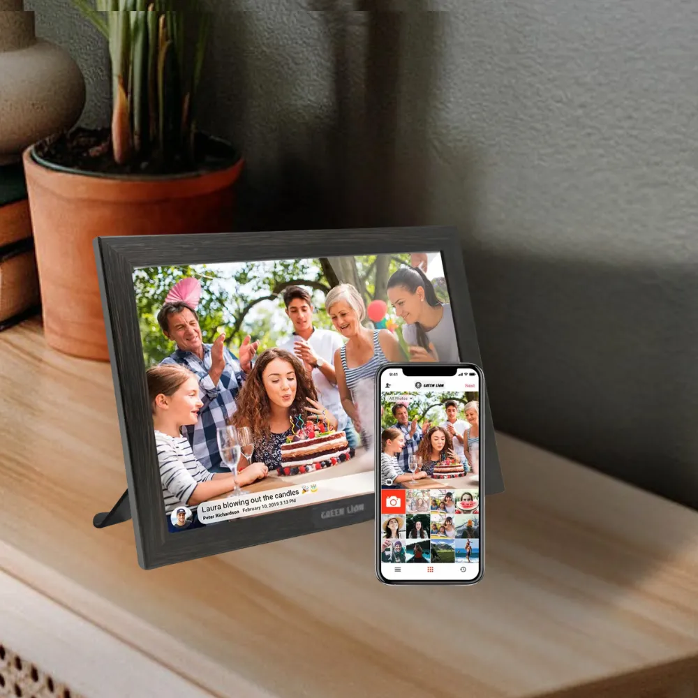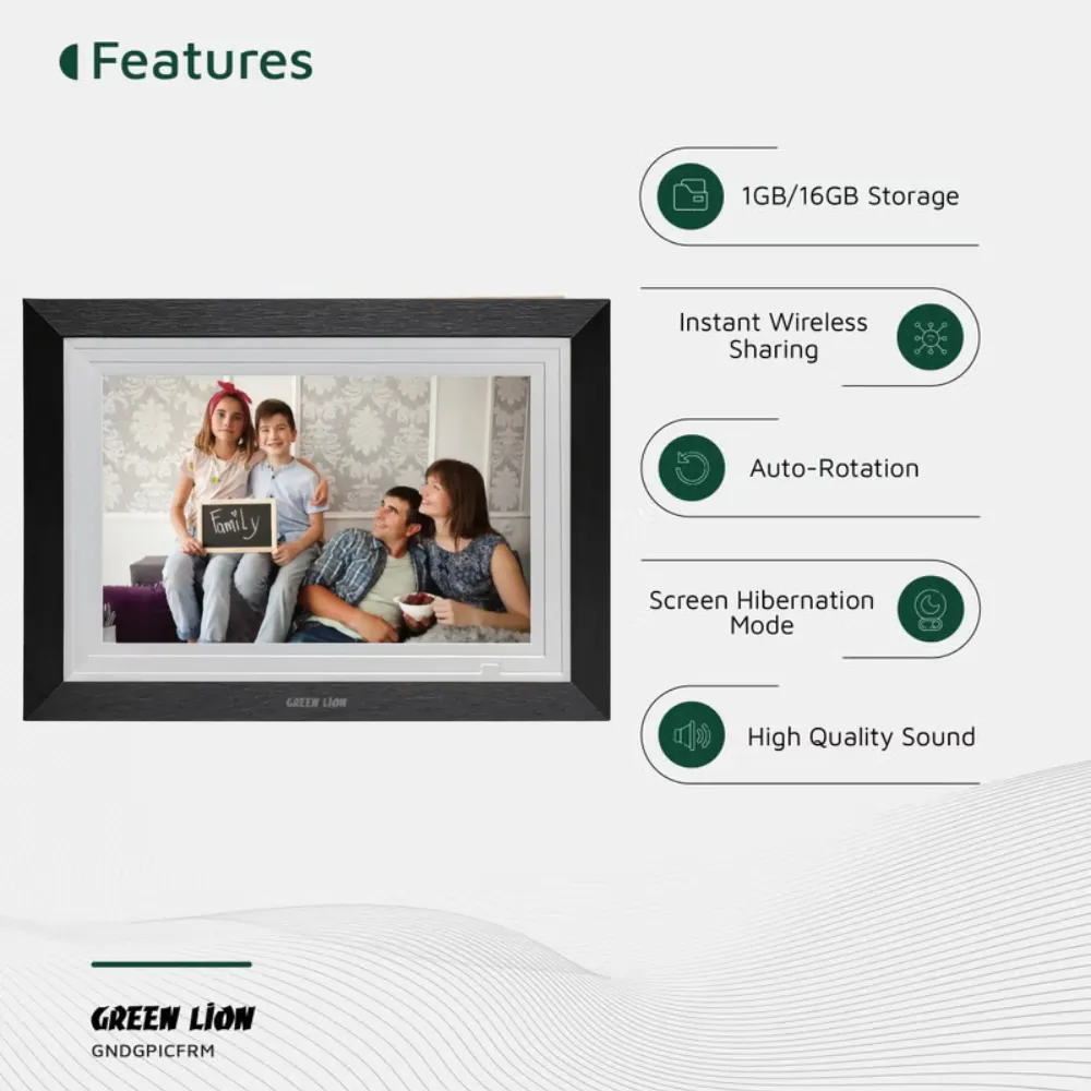 Showcase your most cherished memories in stunning clarity with the Green Lion Digital Picture Frame. Featuring a 10.1-inch IPS touchscreen display with 800x1280 resolution, this stylish frame brings photos and videos to life with vibrant color and detail. Enjoy effortless media sharing via Wi-Fi and the Frameo app, plus user-friendly features like auto-rotation, smart photo centering, and screen hibernation to ensure every image looks its best. Perfect for any room, it combines modern design with powerful performance.
