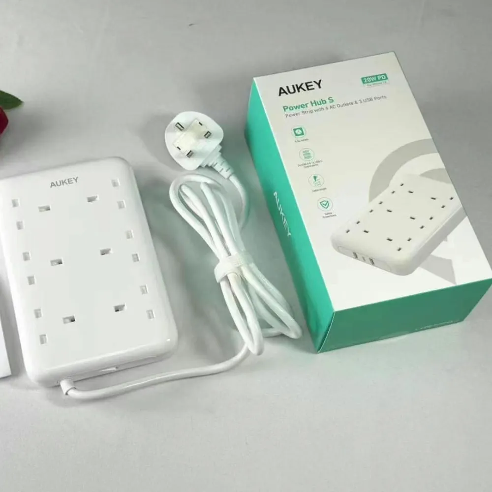 The AUKEY Power Hub S is your all-in-one charging and power solution for home, office, or workstation setups. Featuring 6 AC outlets, 2 USB-A ports, and 1 USB-C port with 20W fast charging, this power strip delivers convenience, performance, and safety all in one compact design. With a 1.5-meter durable power cord and a high electrical rating of 2500W (250V-60Hz, 10A), it can handle multiple high-power devices simultaneously. Charge smartphones, tablets, laptops, and power appliances efficiently without clutter or delays.