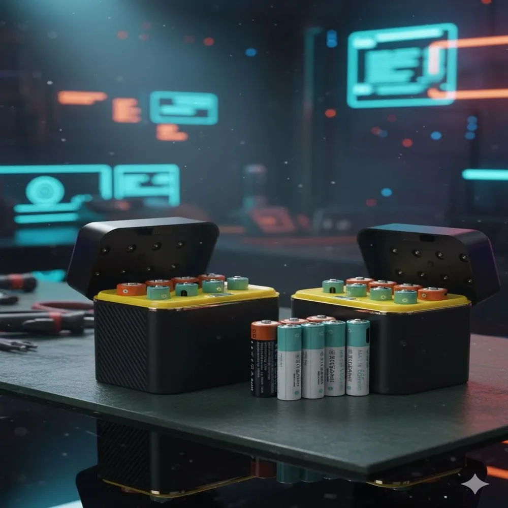 The CH-08 PowerPods is the ultimate rechargeable battery solution, built for versatility, safety, and convenience. Designed to support both AA and AAA batteries, it works perfectly with 1.2V Ni-MH and 1.5V Li-ion types, making it suitable for all your devices—from remotes and cameras to gaming controllers. Its intelligent charging case allows you to charge multiple batteries at once while preventing overheating or overcharging. The automatic shutoff feature ensures safe and energy-efficient performance every time. With its compact and durable design, the PowerPods is perfect for home, office, or travel, keeping your power needs covered wherever you go.