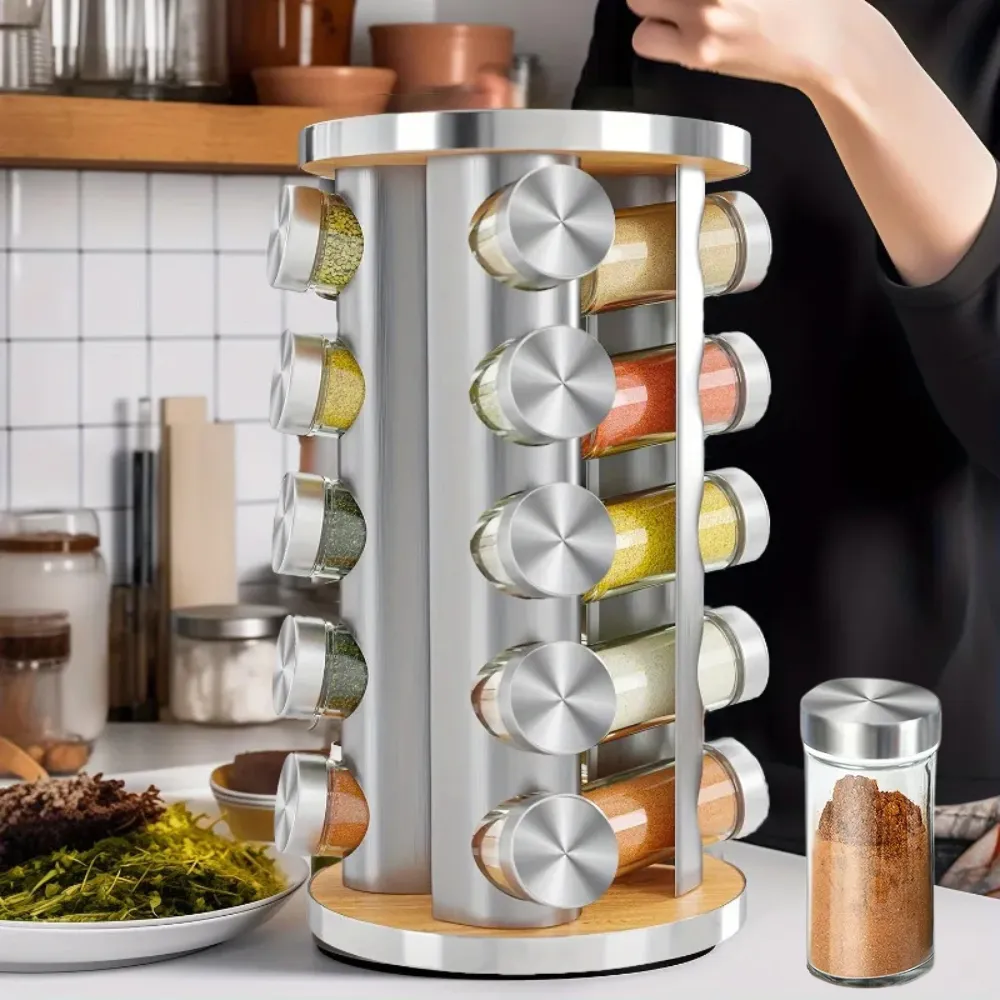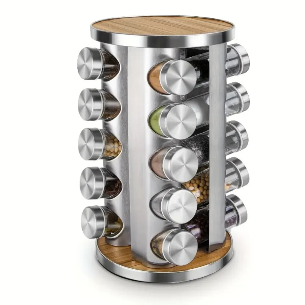 Keep your kitchen neat, stylish, and efficient with the Multi-Layer Stainless Steel Rotating Seasoning Rack. Designed with a 360° rotating base, this spice organizer provides quick and easy access to your favorite seasonings while saving counter space. It comes with 20 durable jars, perfect for storing a wide range of spices, herbs, and condiments. The sturdy stainless steel construction ensures long-lasting use, while its sleek design complements any kitchen décor. Ideal for both home cooks and professional chefs, this seasoning rack makes meal prep faster and more organized.