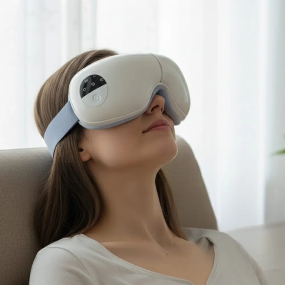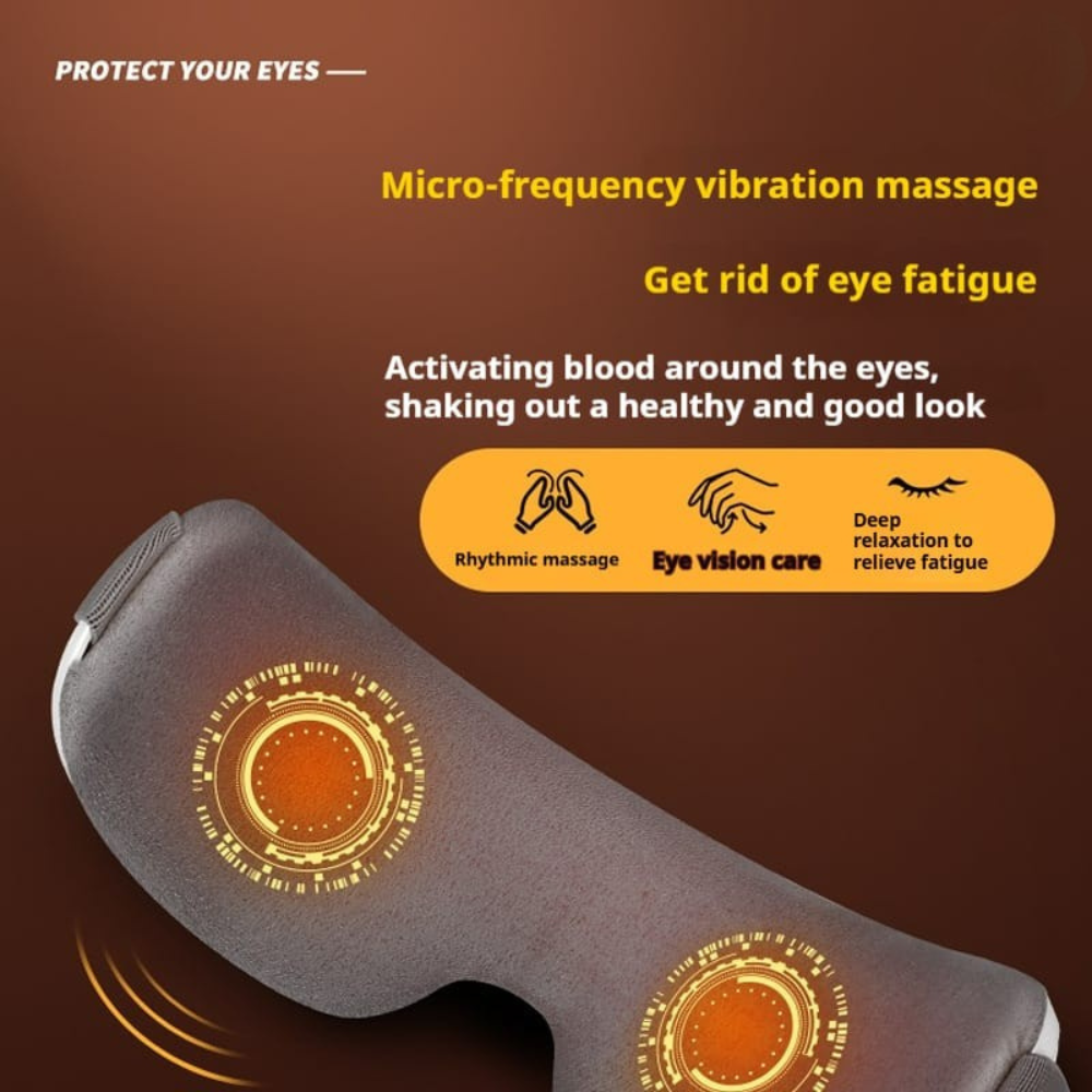 Relax, refresh, and restore your eyes with the EYEZEN Intelligent Eye Massager. Featuring three-level heating and multi-mode massage, it helps relieve headaches, eye fatigue, and dryness while improving sleep quality. The gentle warmth promotes blood circulation to reduce dark circles, and the rhythmic kneading mimics real fingertip pressure for a spa-like experience at home. With a foldable, ergonomic design and rechargeable battery, this massager is the perfect wellness companion for work, travel, or relaxation.