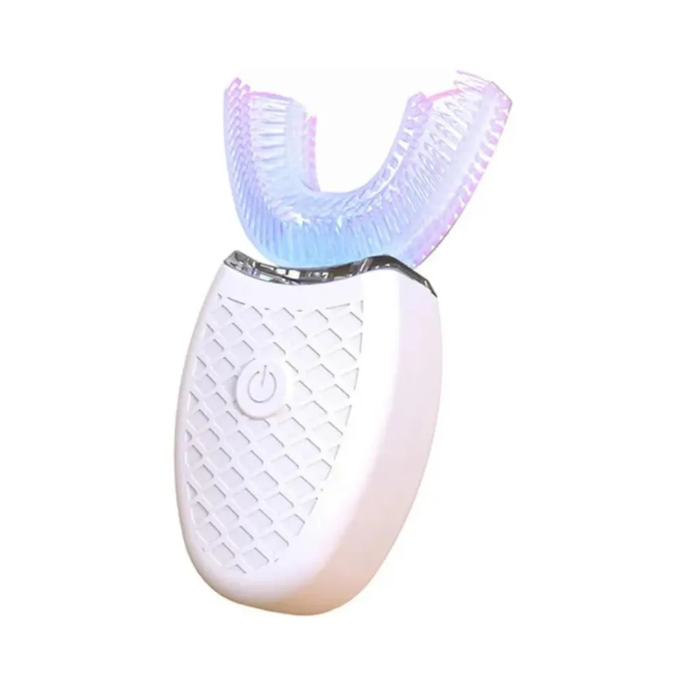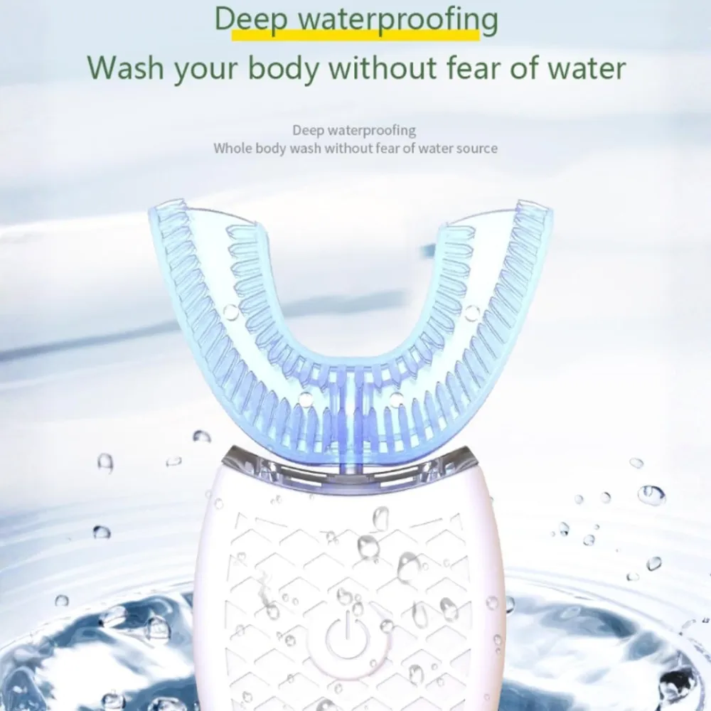 The UltraClean Smart U-Shape Sonic Electric Toothbrush offers a modern, hands-free approach to complete oral care. Its 360° U-shaped silicone mouthpiece ensures full-coverage brushing, reaching deep between teeth for more efficient cleaning. Designed with a scientific 45° bevel angle, it replicates professional brushing techniques while delivering powerful sonic vibrations for thorough plaque removal. With a durable silicone body, IPX7 waterproof rating, and a travel-friendly design, it provides a convenient and hygienic brushing experience for adults at home or on the go.