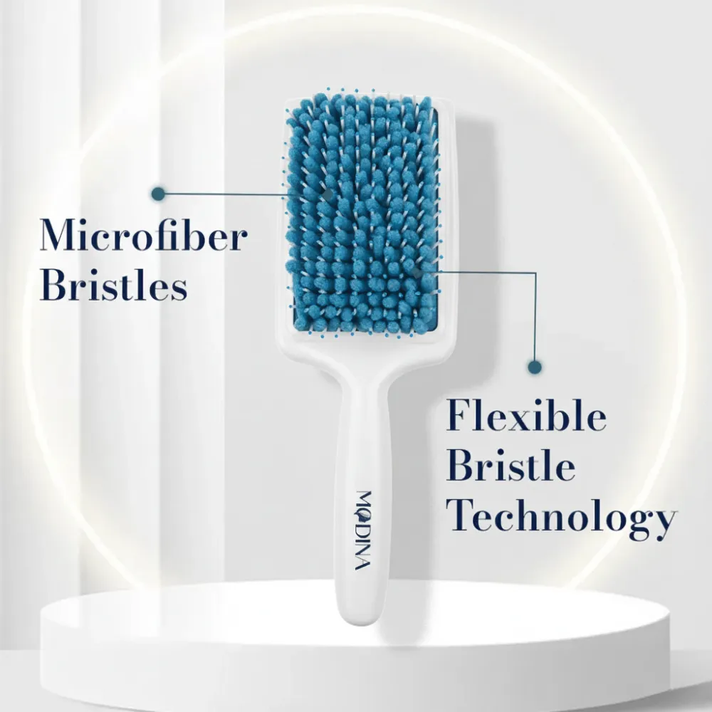 Dry and detangle your hair effortlessly with the Modina Towel Hair Brush. Featuring ultra-absorbent microfiber bristles, this brush quickly removes excess water after a shower while minimizing frizz and breakage. Suitable for all hair types, it makes post-shower styling faster, smoother, and easier, helping you achieve healthy, manageable hair with minimal effort.