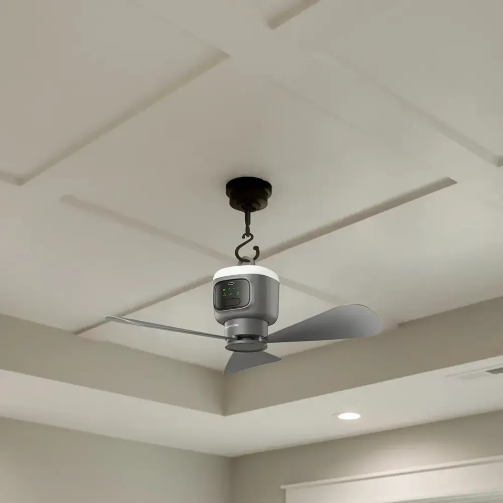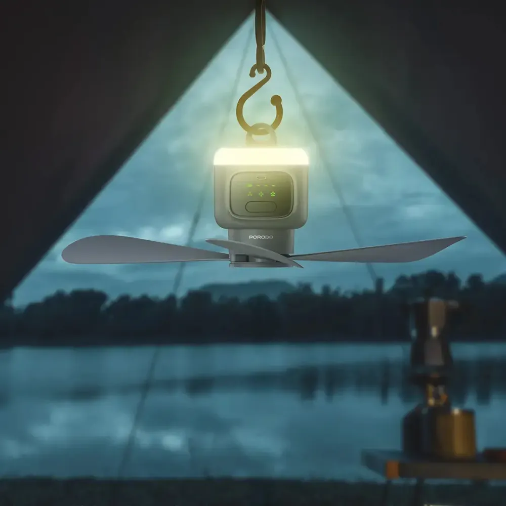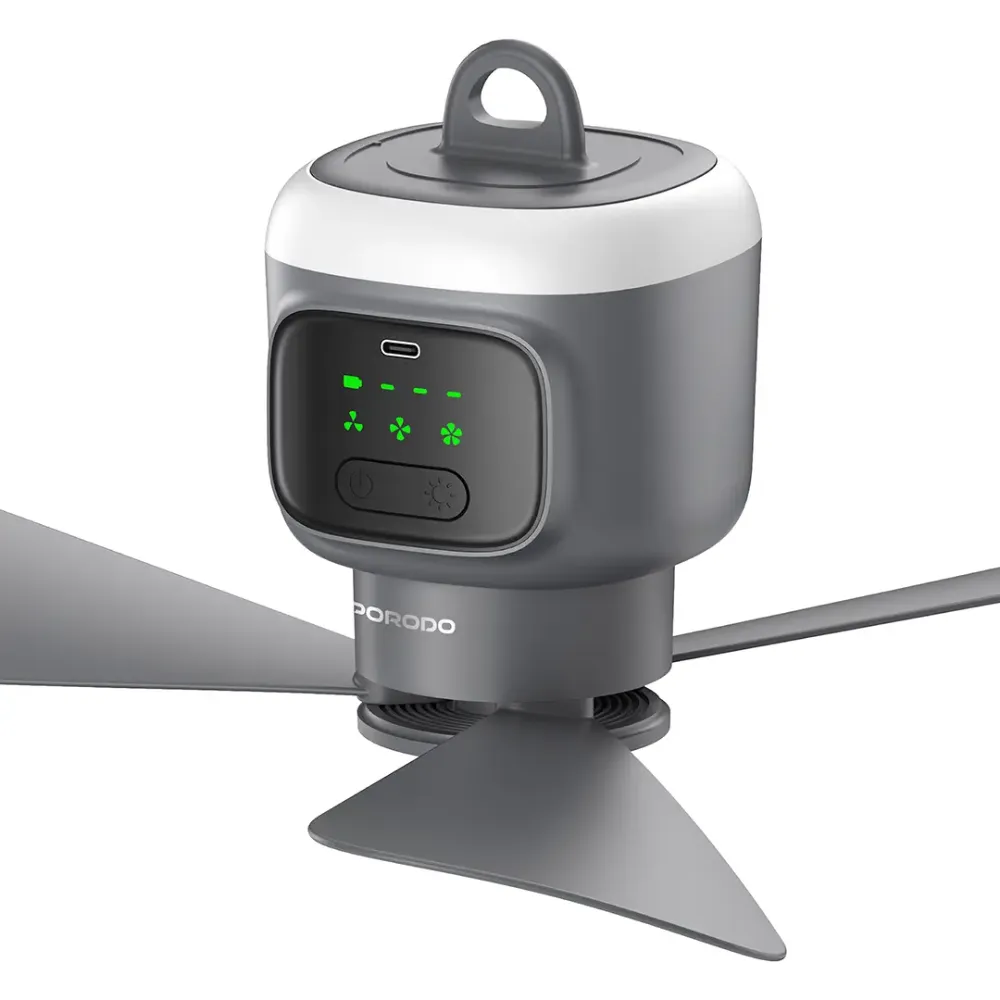 Stay cool and comfortable outdoors with the Porodo Lifestyle Rechargeable Camping Ceiling Fan in Gray. Designed for tents, patios, and outdoor lounging, this 2-in-1 fan combines powerful airflow with a soft ambient night light. Its 12,000mAh battery delivers hours of fresh air—anywhere—while the ultra-quiet motor ensures peaceful rest under the night sky. With multiple speeds, lighting modes, and full remote control, it’s the perfect portable cooling solution for camping and outdoor adventures.