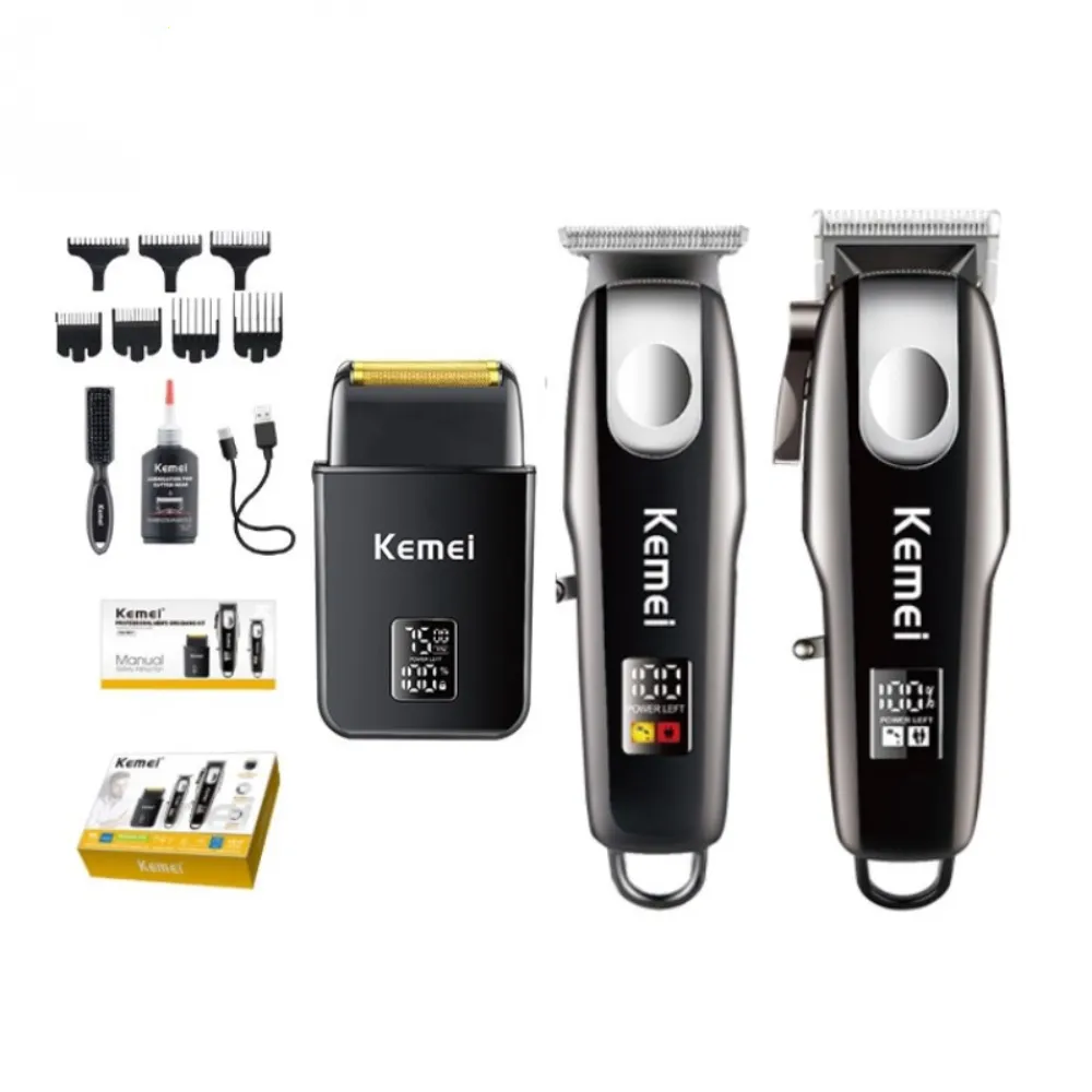 Achieve professional grooming results at home with the KEMEI KM-8531 Barber Cordless Hair Trimmer 3-Piece Kit. Designed for versatility and precision, this electric grooming set is ideal for hair trimming, beard shaping, and detailed styling. Its cordless, rechargeable design offers complete freedom of movement, making it suitable for both personal and professional use. With sharp precision blades and multiple grooming tools, this kit delivers reliable performance for everyday grooming needs.