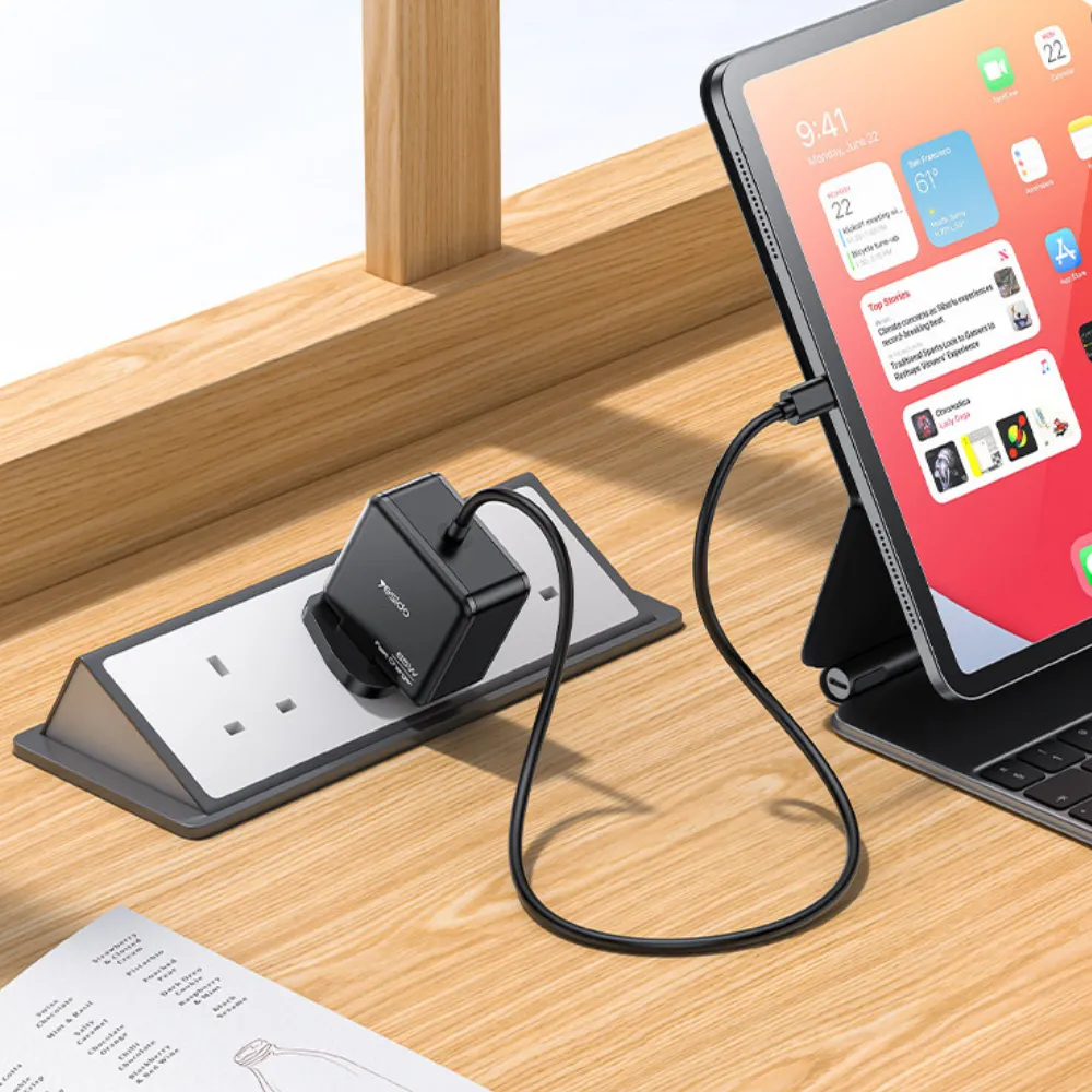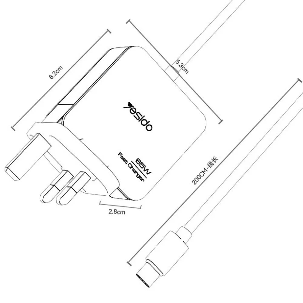Power up your devices efficiently with the Yesido YC93 65W Fast Charging Wall Charger Adapter. Designed with a USB-C output and UK standard plug, this charger delivers reliable high-speed charging for laptops, tablets, and smartphones. With broad protocol compatibility and a long 2-meter cable, it offers flexibility and convenience for home, office, or travel use. Its durable construction and wide voltage support make it a dependable everyday charging solution.